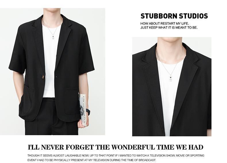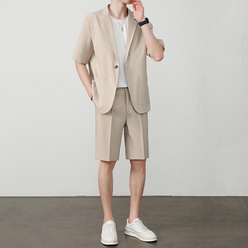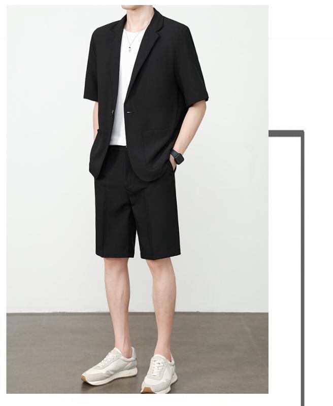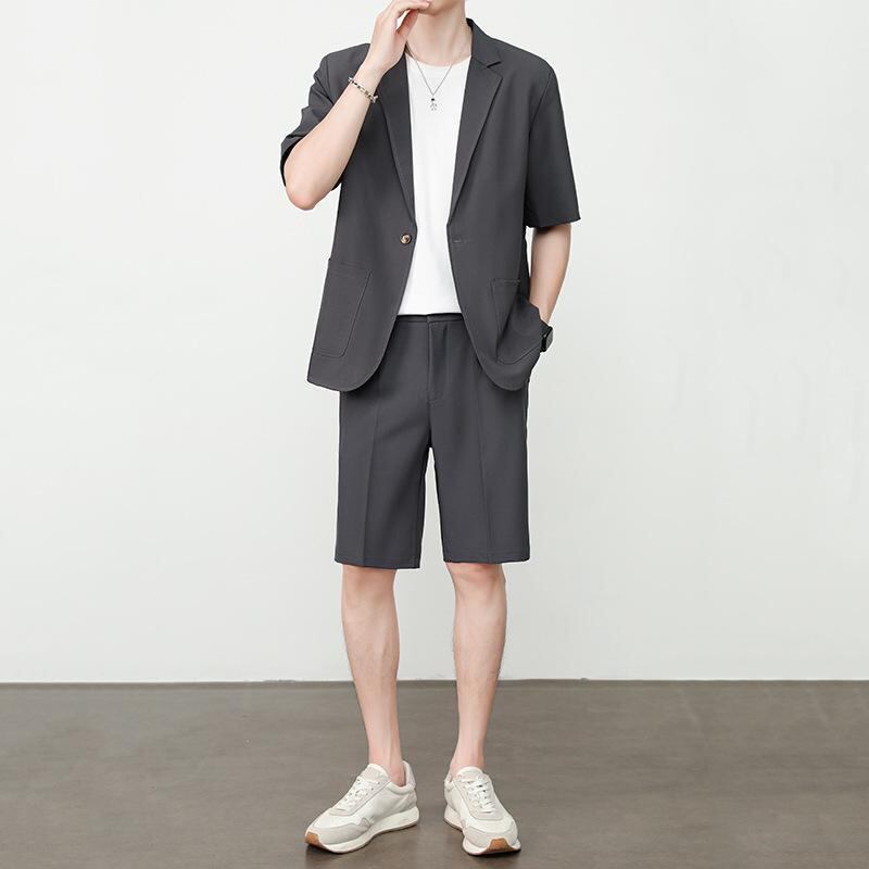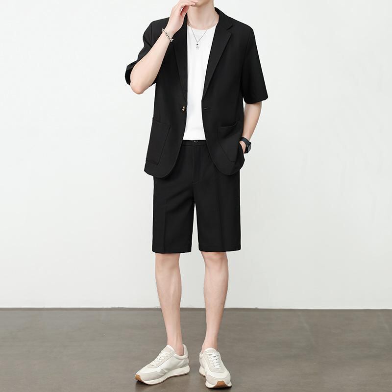 ジャケット メンズ 夏 カジュアル 韓国ファッション トレンド 半袖 ショートパンツ セットアップ ポリエステル混紡 薄手 ゆったり ショールカラー 普段使い リラックススタイル
