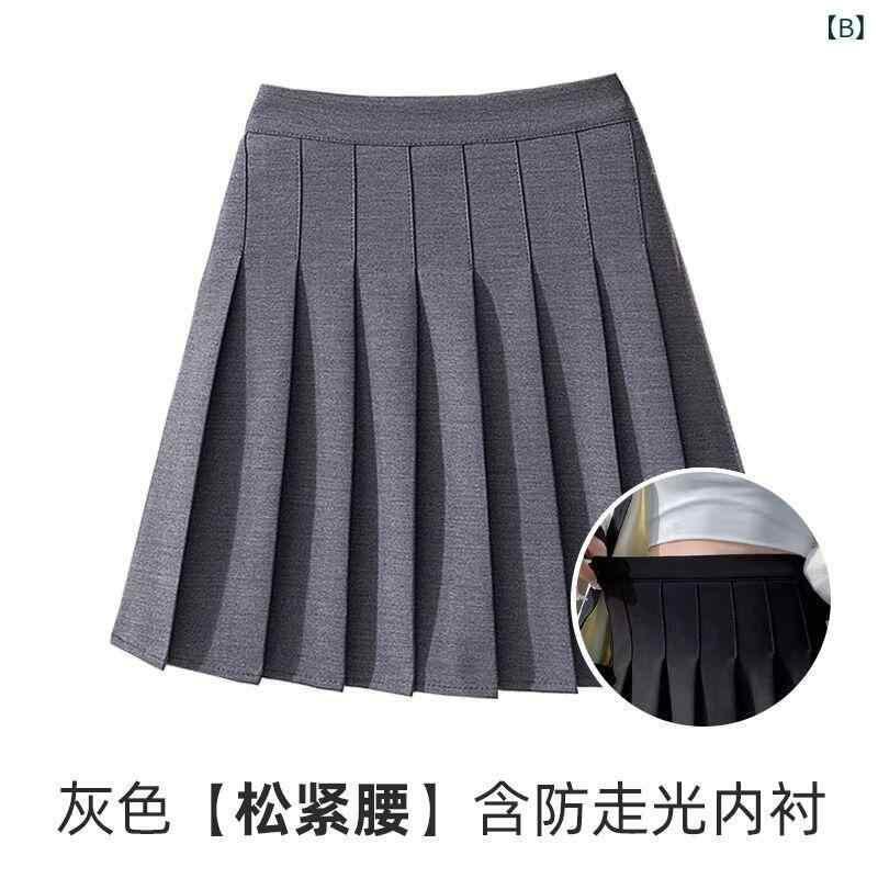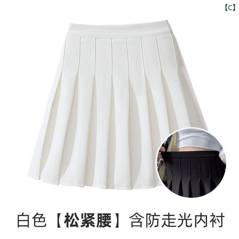プリーツスカート レディース 学院風 ショート丈 ハイウエスト Aライン ウエストゴム ポケット付き 大きいサイズ ポリエステル 無地 ドレープ感 シワになりにくい 伸縮性 ブラック グレー ホワイト ブラウン