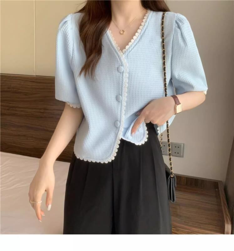 トップス レディース Vネック 半袖 ショート丈 フレンチレトロ デザイン きれいめ 甘辛ミックス ゆったり 大きいサイズ 体型カバー 細見え カジュアルトップス