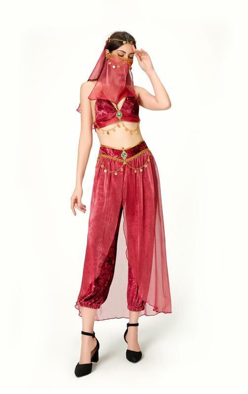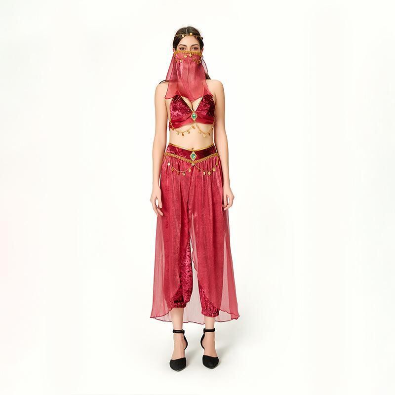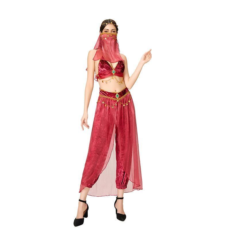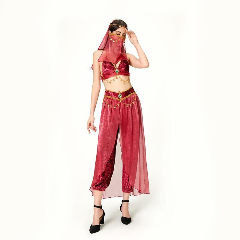 コスチューム レディース 大人用 ハロウィン イベント コスプレ 純欲スタイル ベリーダンス ラテンダンス エキゾチック 異国風 セクシー 猫耳 アラジン ジャスミンプリンセス 民族衣装 舞台衣装 ポリエステル 仮装 フルセット