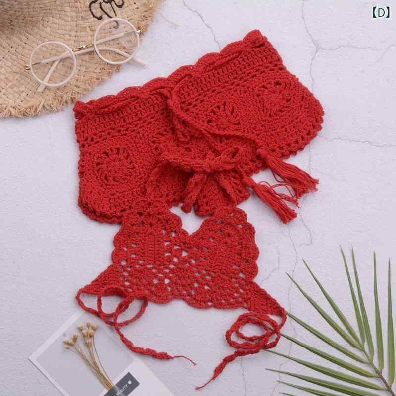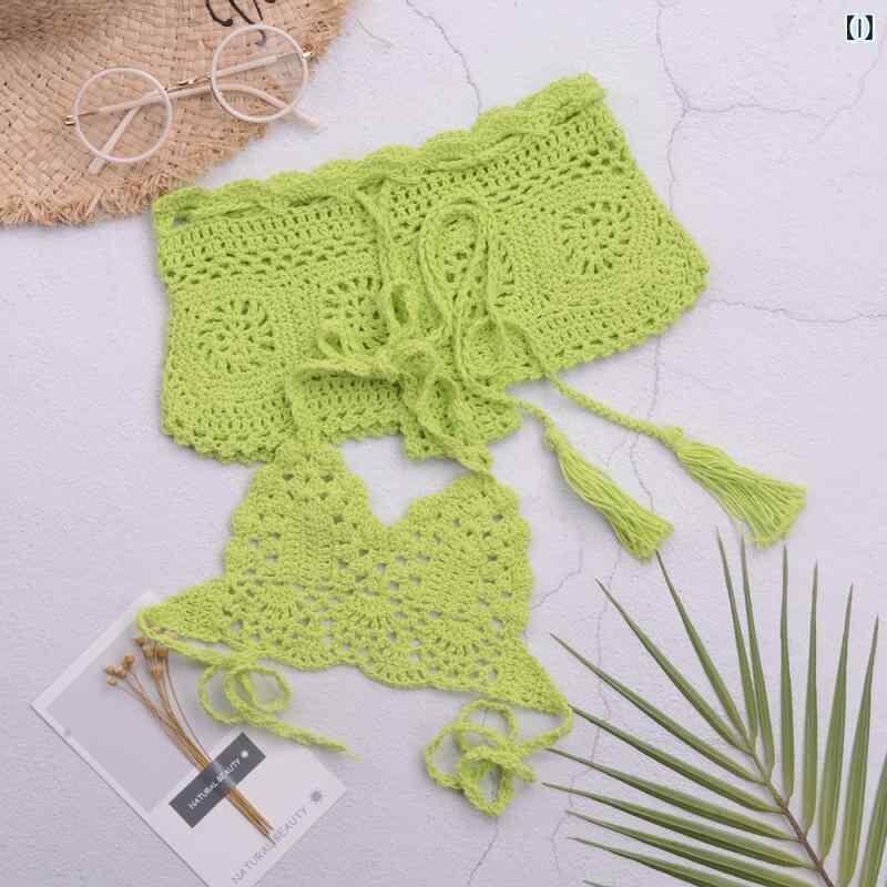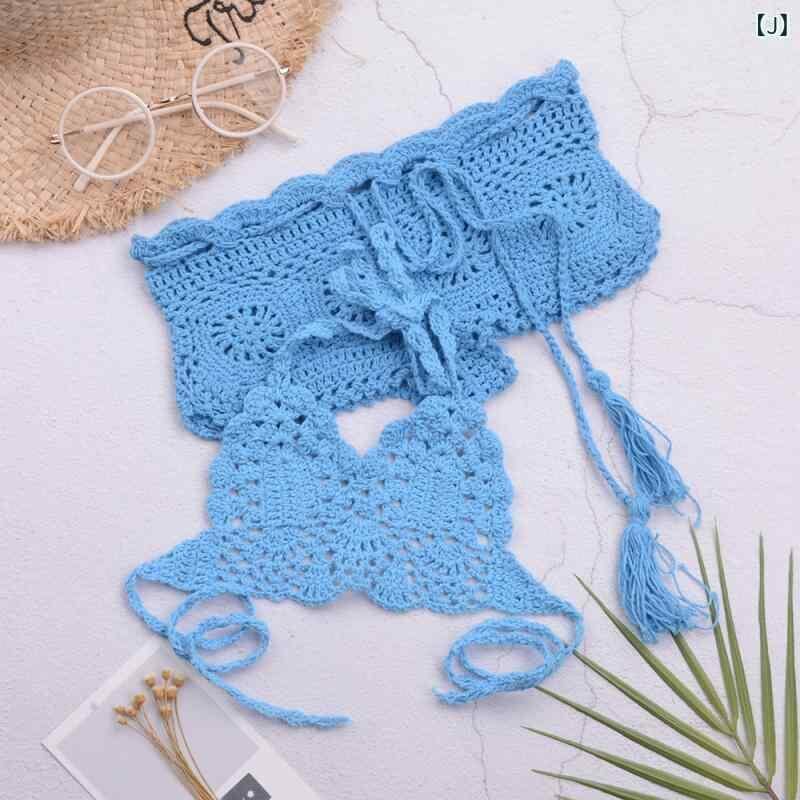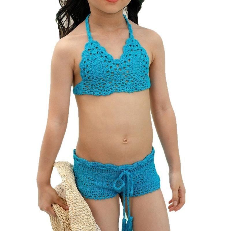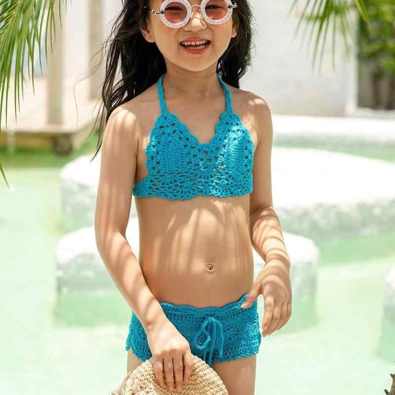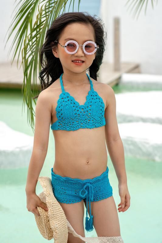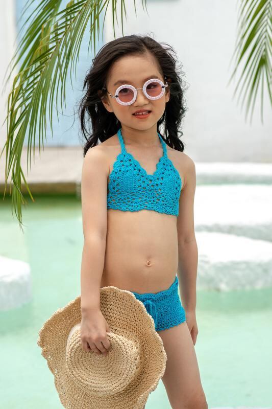 水着 キッズ 女の子 子供用 セパレート スイムウェア 手編み 編み物 ビーチ プール 海 リゾート 水遊び かわいい ストラップ リボン 綿 アクリル素材 ツーピース カラフル