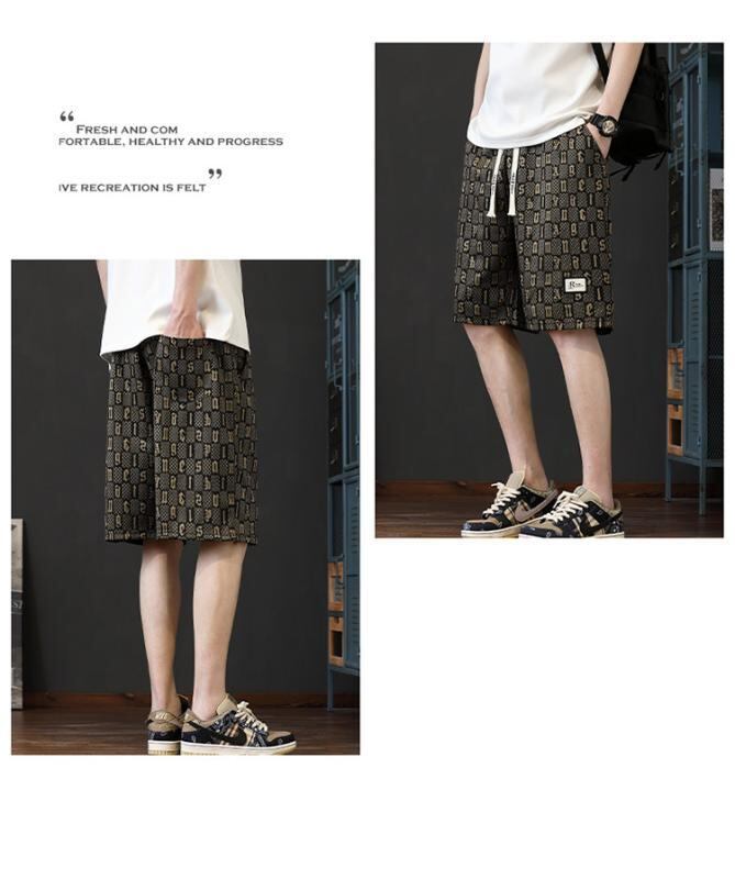 ・主な素材: ポリエステル85%・丈: 五分丈・シルエット: ルーズフィット・スタイル: シンプル・カラー展開: ブラック、ベージュ、グリーン、ブラウン、ブルー・サイズ展開: M、L、XL、XXL、3XL、4XL