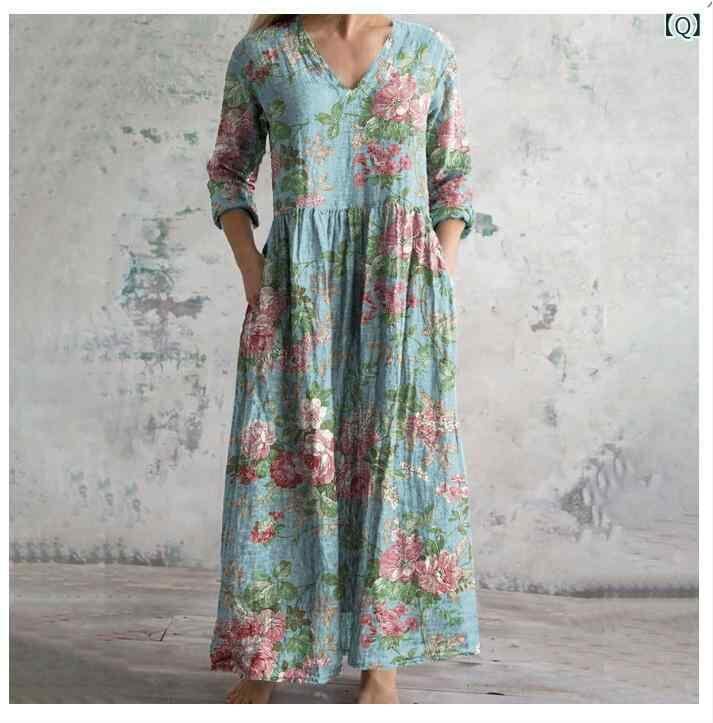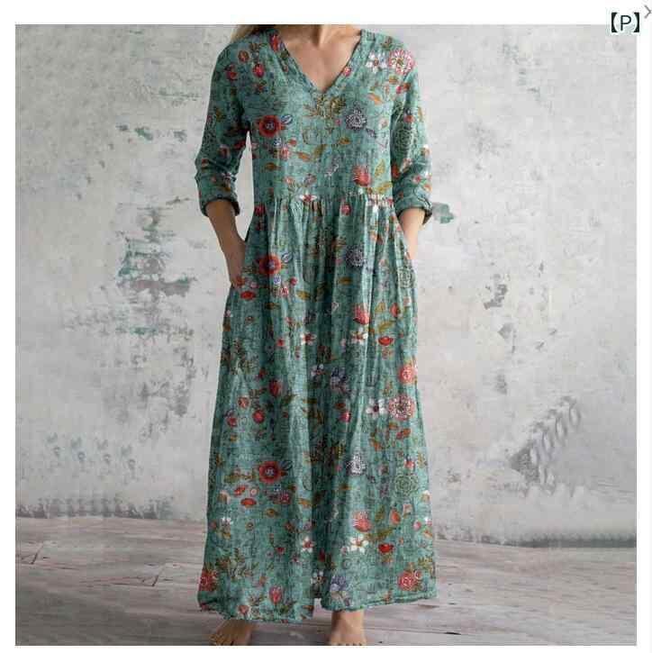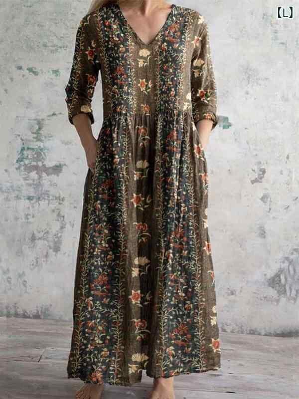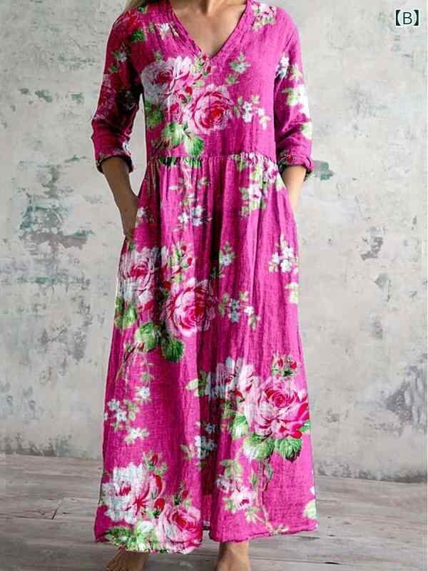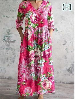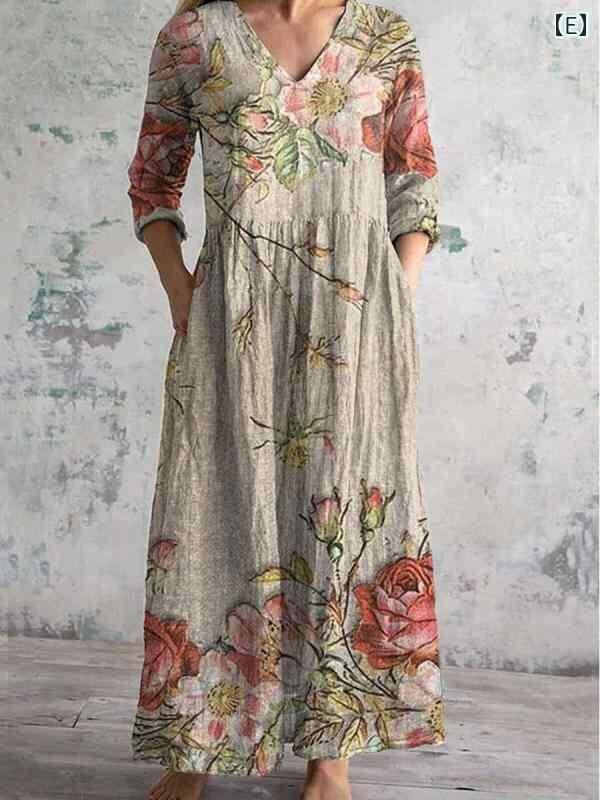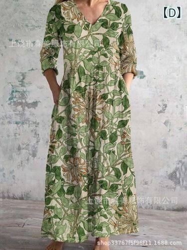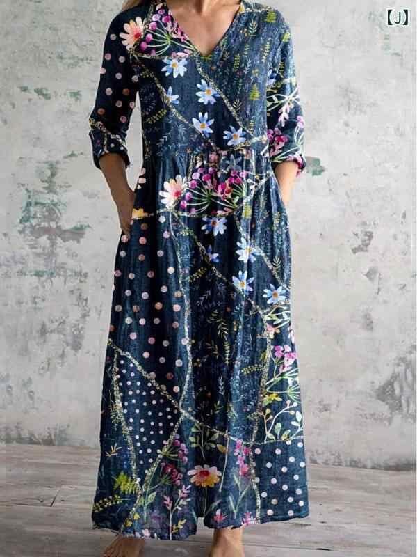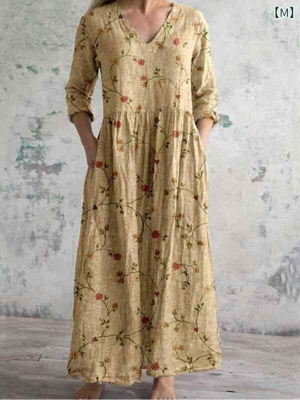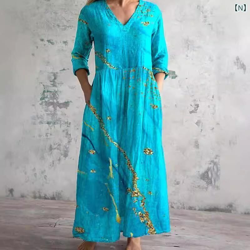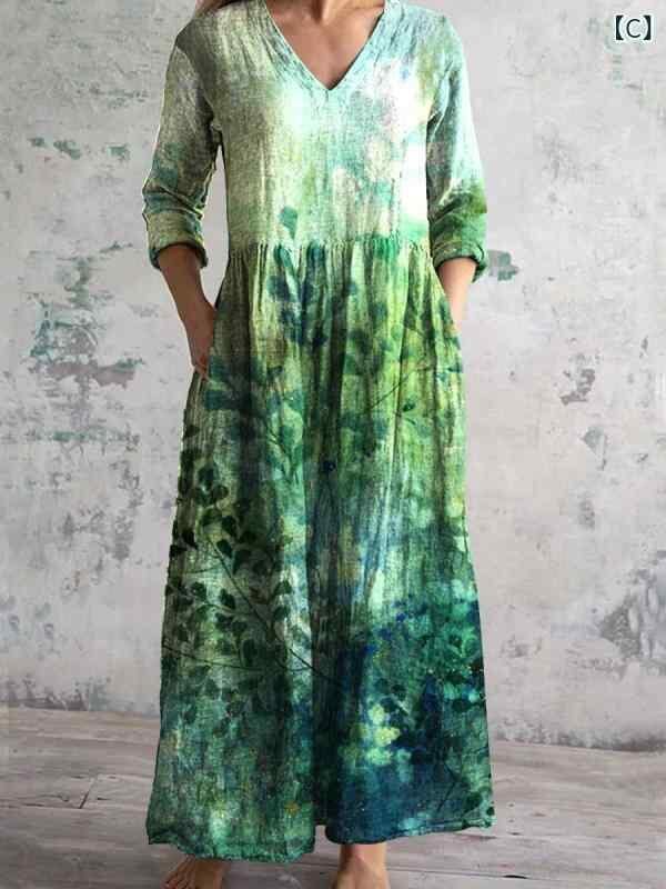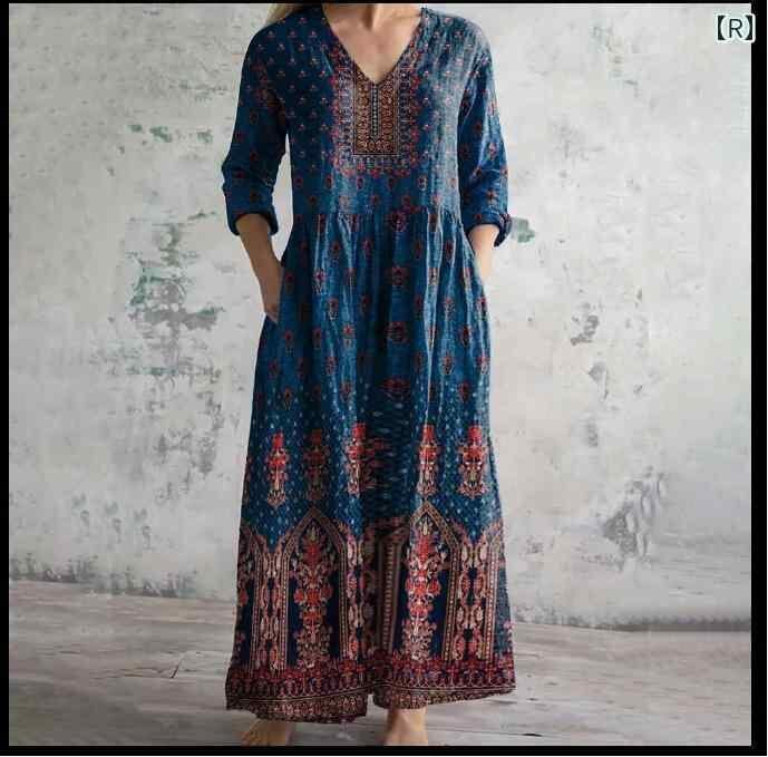 ・カテゴリ: ワンピース ・タイプ: サロペットスカート ・スタイル: レトロ、カジュアル、中国風 ・主な素材: ポリエステル ・スカート丈: ミディ丈 ・ネックライン: Vネック ・袖丈: 七分袖 ・袖タイプ: レギュラー ・ウエスト: ゆったり ・柄: ピクチャープリント ・デザイン要素: プリント ・加工: デジタルプリント ・開閉タイプ: プルオーバー ・セット内容: 単品 ・サイズ展開: S、M、L、XL、2XL、3XL、4XL、5XL