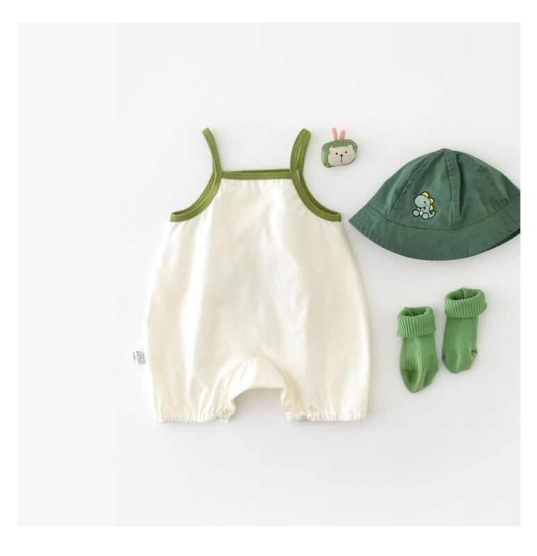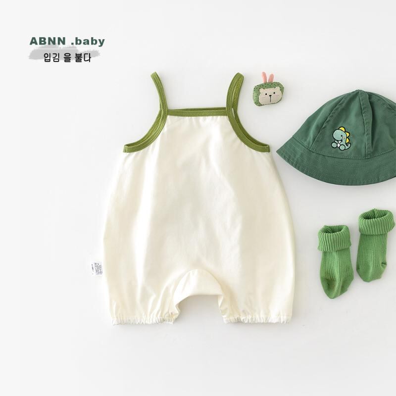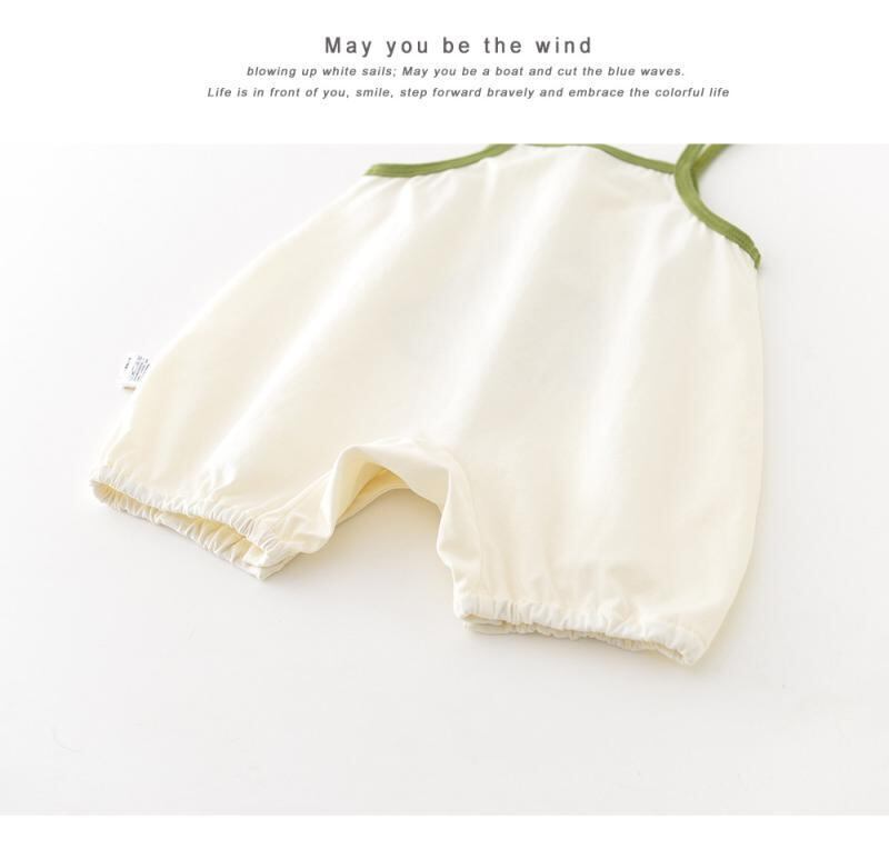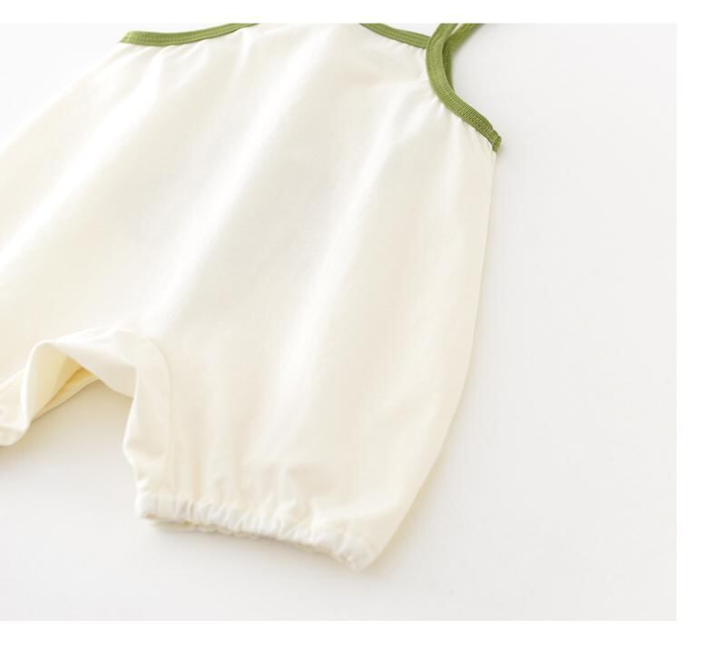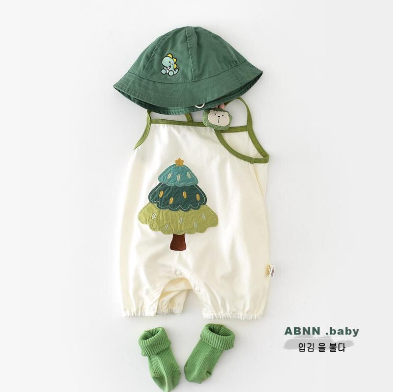 ロンパース カバーオール ベビー キッズ 男女兼用 かわいい カートゥーン ツリー柄 アップリケ 刺繍 ノースリーブ キャミソール 綿混 薄手 涼しい 夏物 部屋着 普段着 縫い目フラット アイボリー