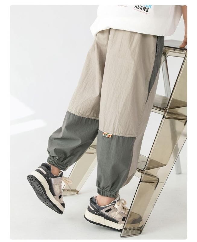 パンツ キッズ 子供 夏用 虫よけ 蚊よけ 通気性 吸湿速乾 軽量 薄手 ストレッチ パッチワーク ロングパンツ ゆったり リラックスフィット ソフト やわらか コットン ポリエステル ズボン