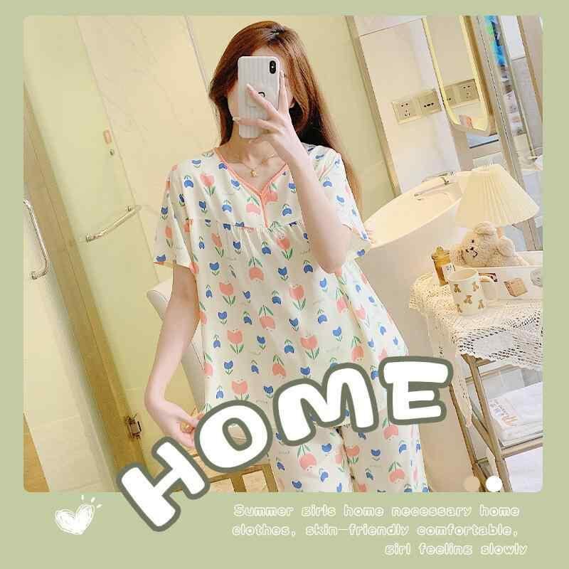 ルームウェア レディース 再生繊維 レーヨン混 薄手 Vネック 半袖 七分丈パンツ 上下セット ゆったり リラックス 部屋着 ワンマイルウェア 涼しい 通気性 快適 シンプル カジュアル 夏