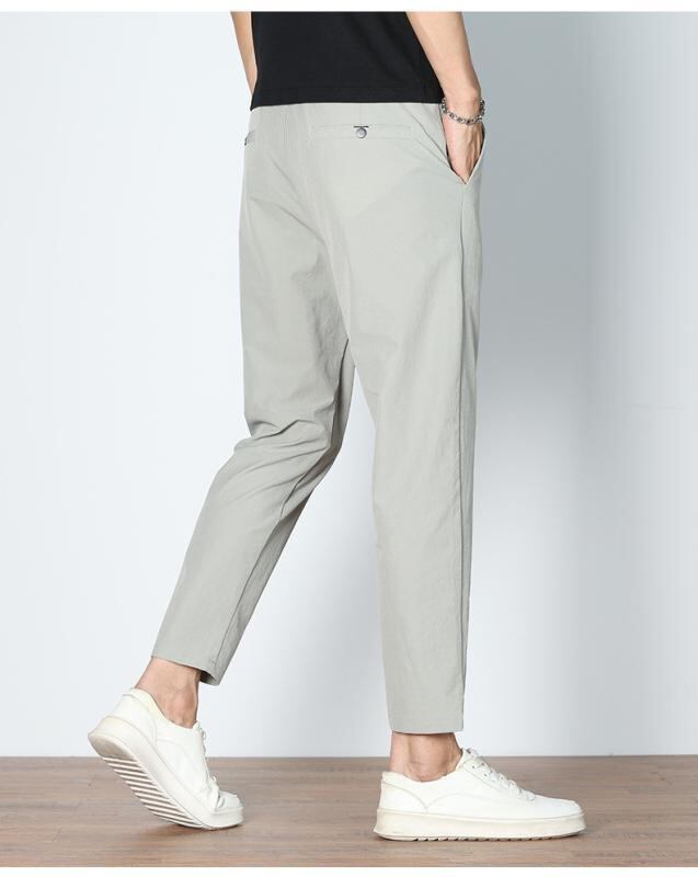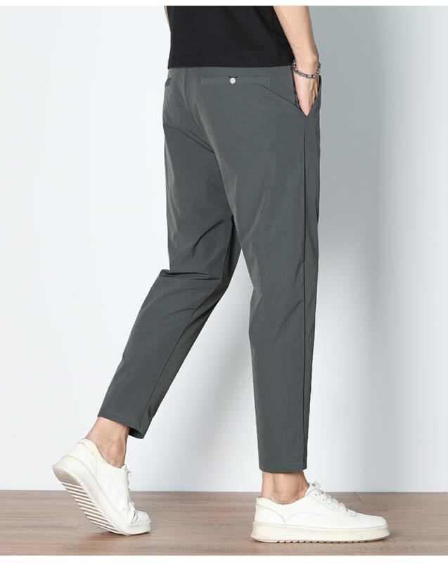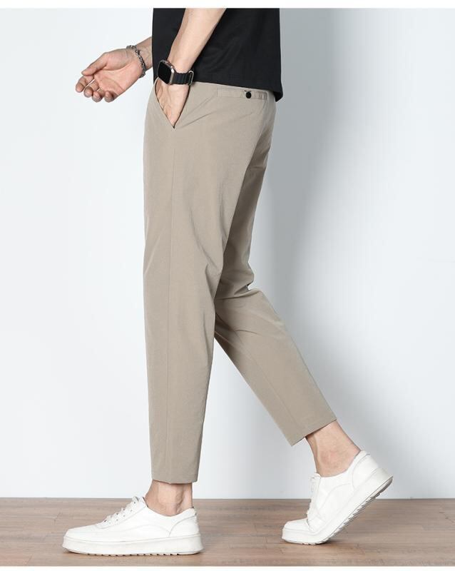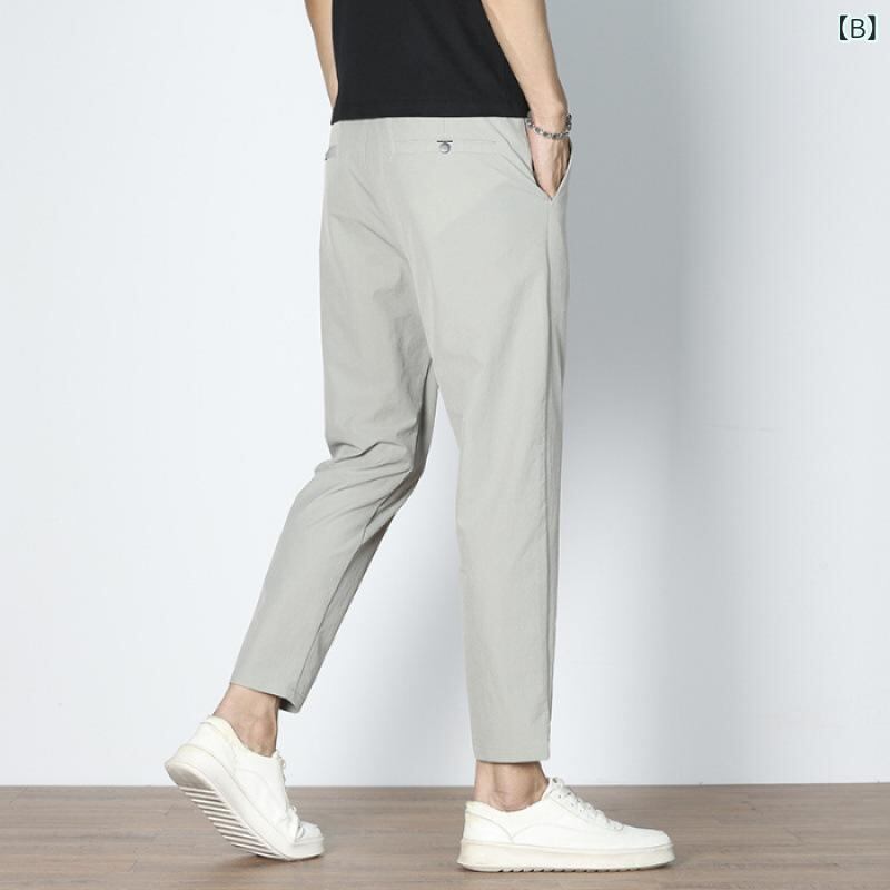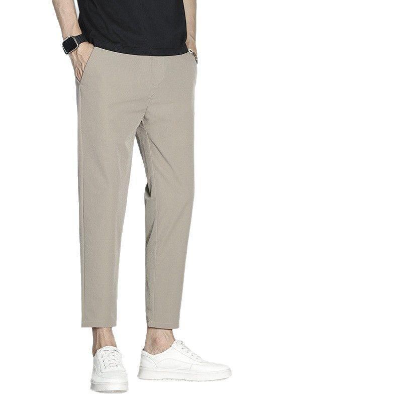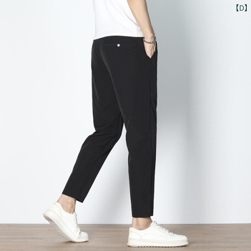 カジュアルパンツ メンズ 接触冷感 九分丈 薄手 スリムストレート 高ストレッチ ナイロンポリウレタン混紡 イージーケア 普段使い デイリーカジュアル 無地