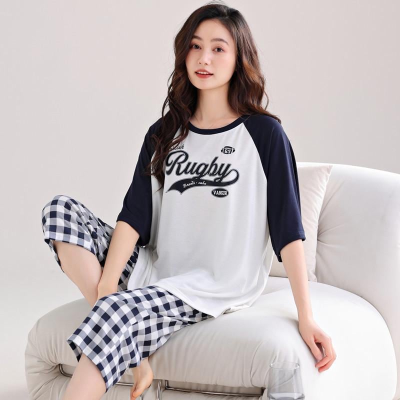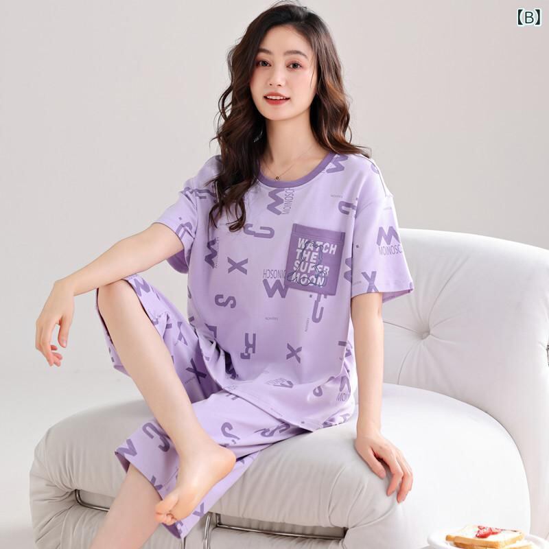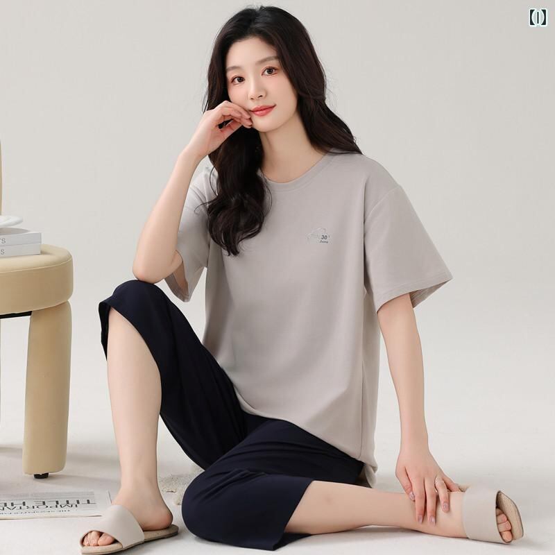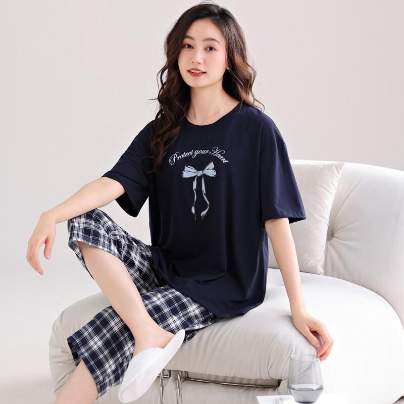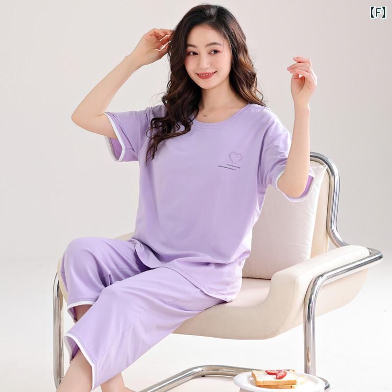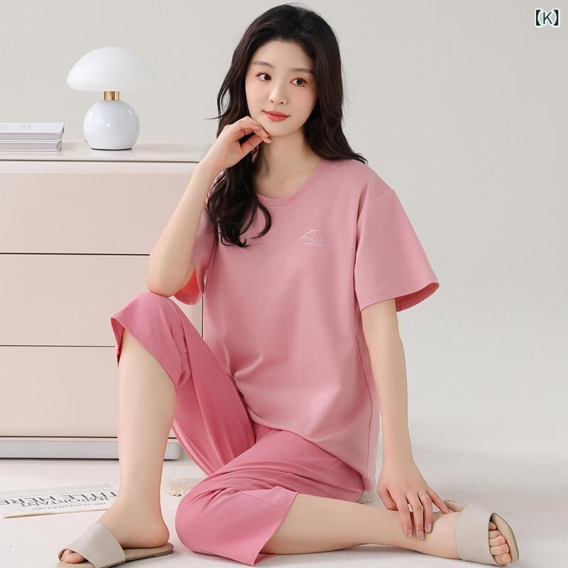 パジャマ ルームウェア レディース 大きいサイズ 半袖 七分丈パンツ 上下セット ゆったり リラックスフィット 薄手 涼しい 接触冷感 モダール ポリエステル ラウンドネック 部屋着 外出着 夏