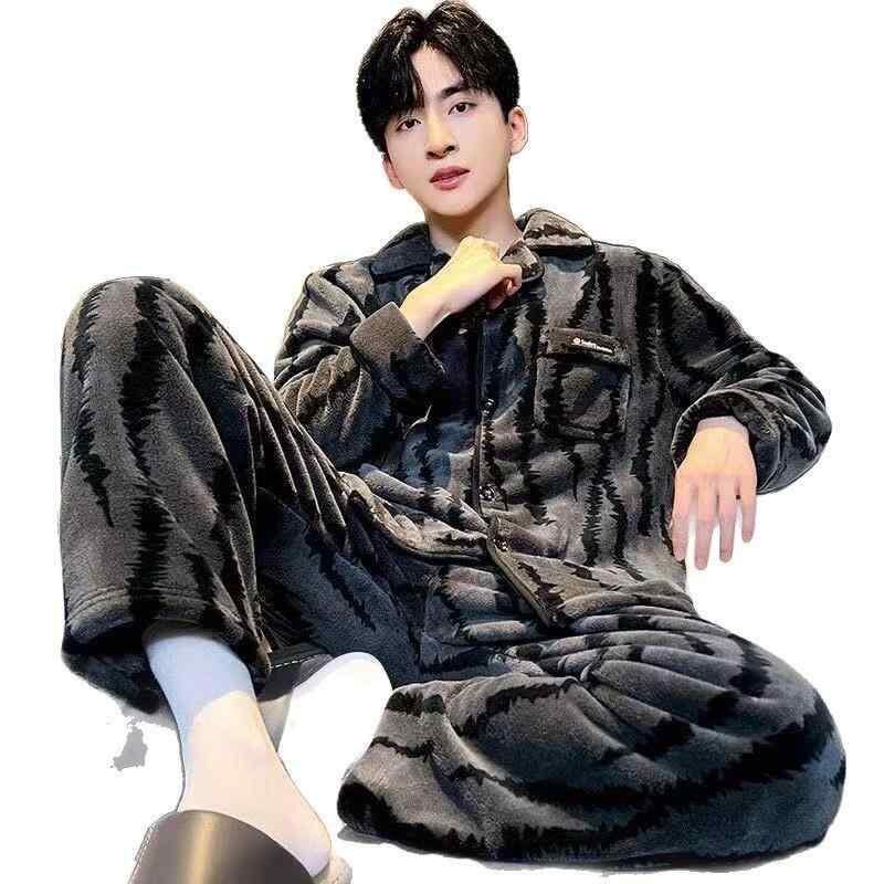 ルームウェア メンズ コーラルフリース 厚手 パジャマ 寝巻き 部屋着 上下セット 長袖 長ズボン クルーネック あったか 保温性 フリース素材 ポリエステル ゆったり カジュアル 秋冬 普段使い