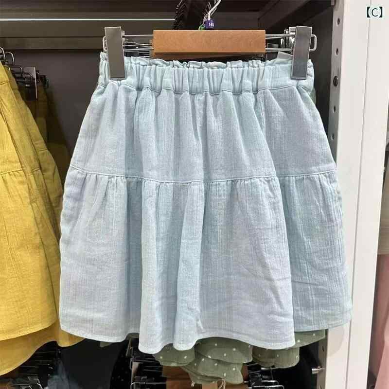 キュロットスカート 女の子 キッズ ミニ丈 ショートパンツ一体型 無地 Aライン フレア 夏服 コットンブレンド素材 普段使い 通園 お出かけ ボトムス ガールズ かわいい