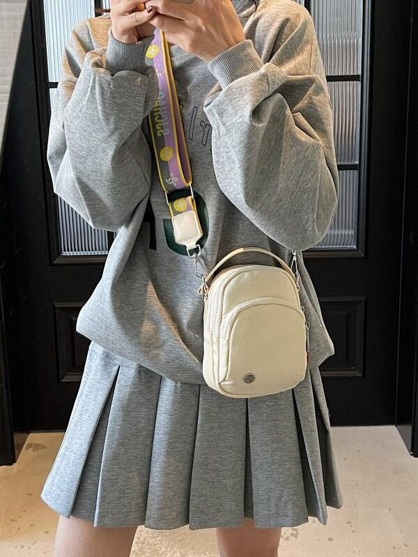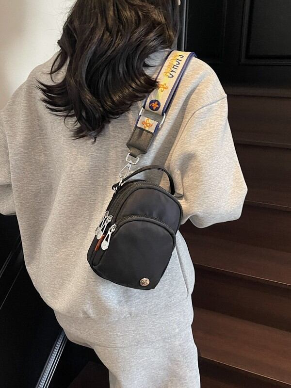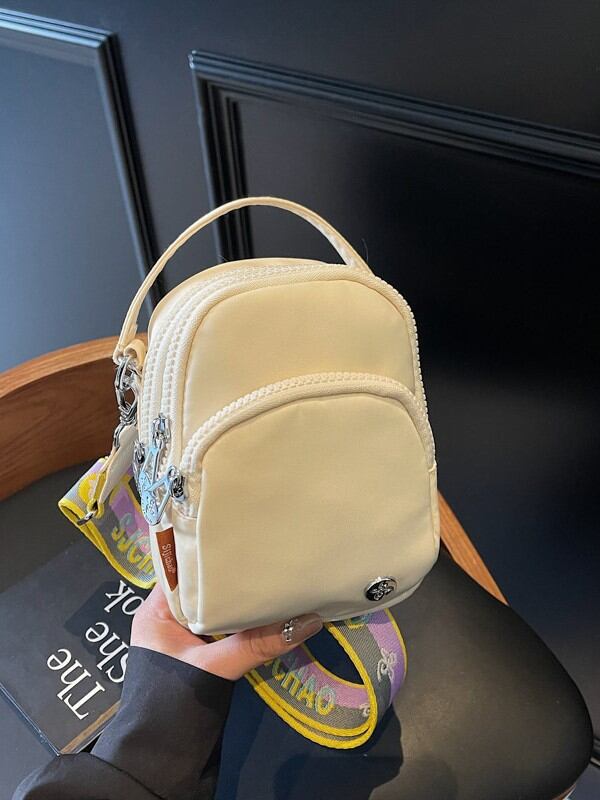 スマホポーチ レディース オックスフォード生地 軽量 ミニショルダーバッグ 縦型 スクエア ソフト 斜め掛け 旅行 普段使い ショッピング デイリーユース ファスナーポケット付き カジュアル 白 黒 イエロー バイカラー