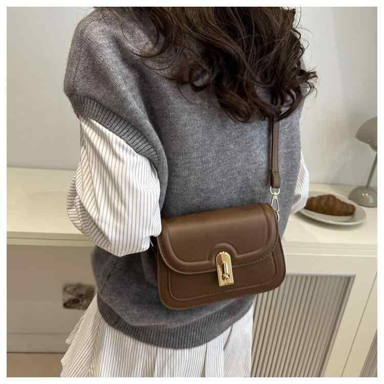 バッグ レディース レトロ質感 ロック金具 ショルダーバッグ 高級感 シンプル 通勤 ワンショルダー スクエアバッグ PUレザー ミニ コンパクト ストリート カジュアル 白 黒 カーキ 茶色