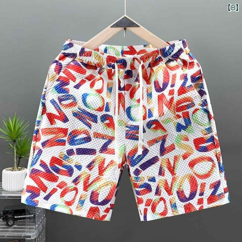 ハーフパンツ メンズ 男性用 五分丈 ショートパンツ 薄手 軽量 ゆったり ストレート ドローストリング 速乾 通気性 スポーツカジュアル ビーチウェア 水陸両用 普段使い レジャー アウトドア リゾート カラーブロック 迷彩柄 総柄 ポリエステル