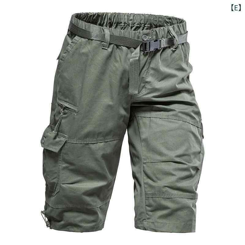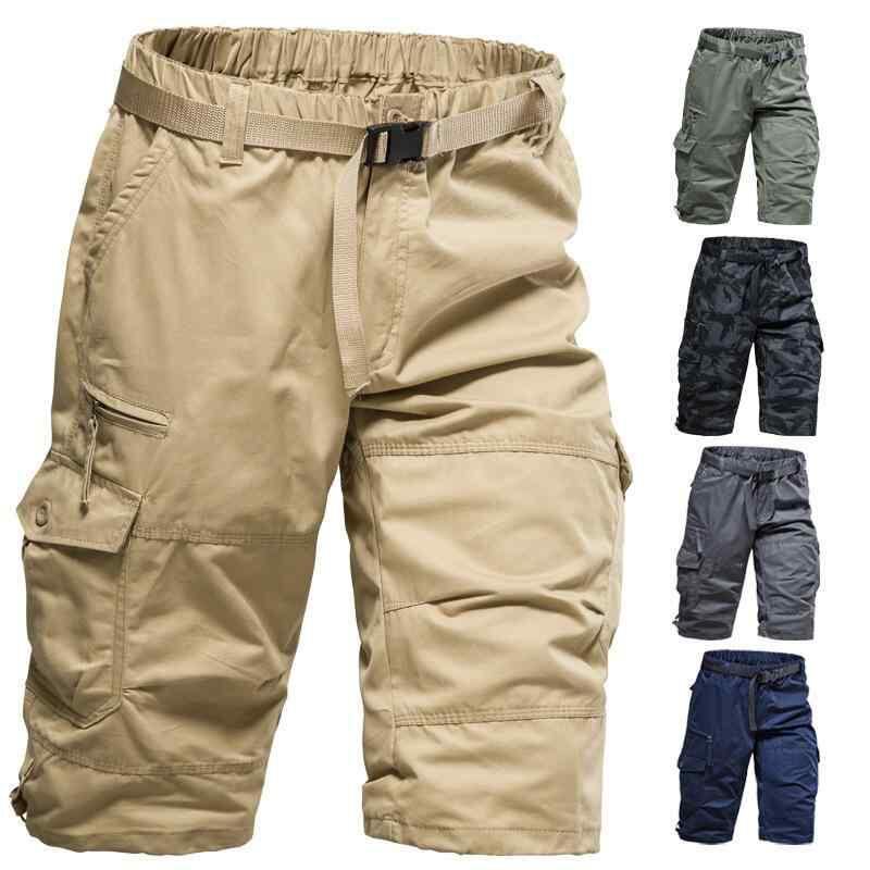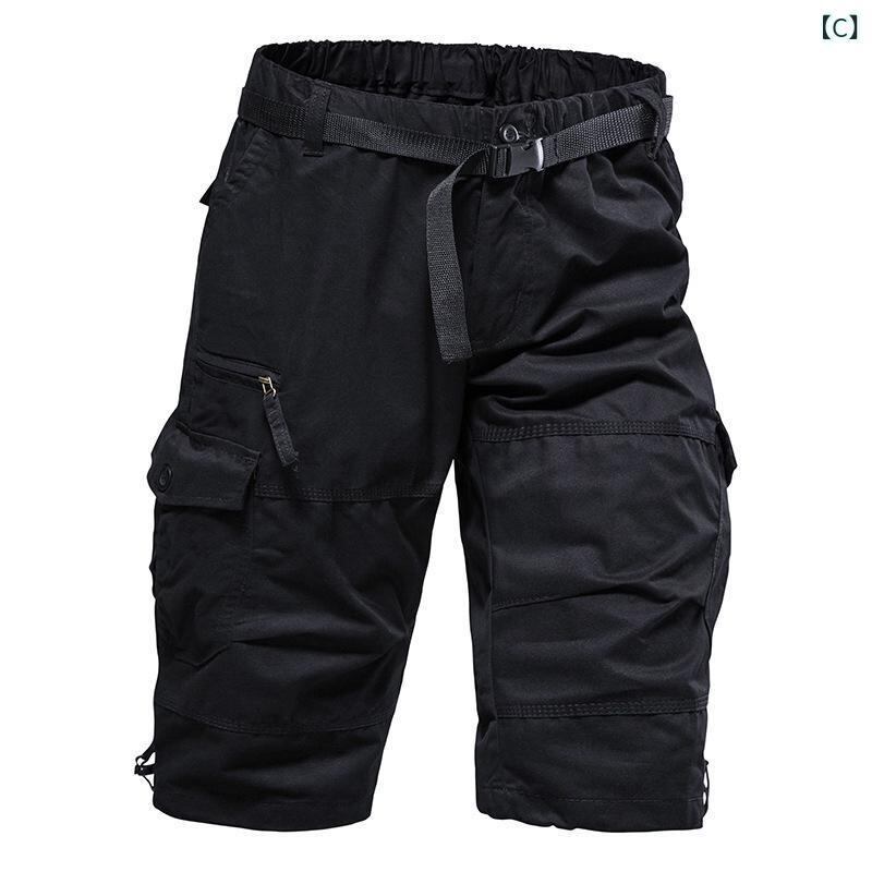 カーゴパンツ メンズ ストレート 七分丈 クロップドパンツ 無地 ミドルウエスト 綿 コットン 夏用 カジュアル 普段使い リラックス 高耐久 ポケット付き
