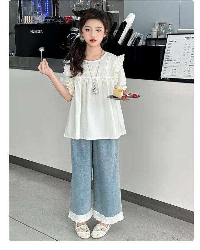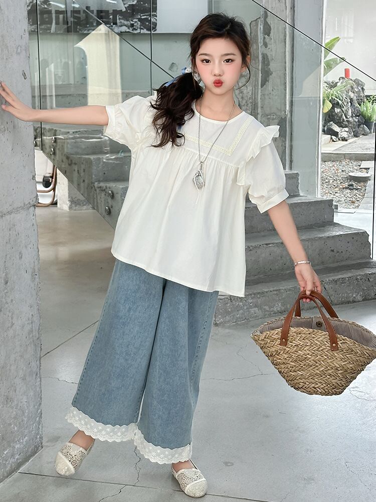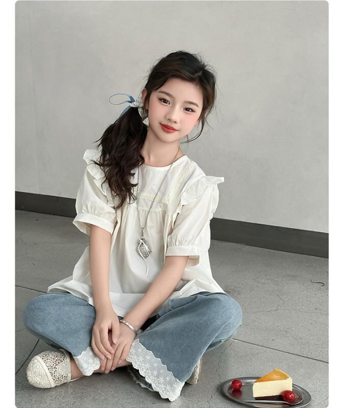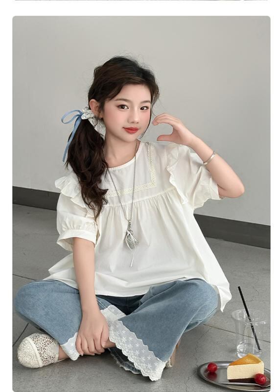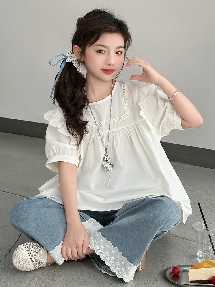 チュニック 女の子 キッズ 半袖 フリル 無地 綿 コットン ソフト 柔らかい ブラウス おしゃれ かわいい 普段使い ホワイト
