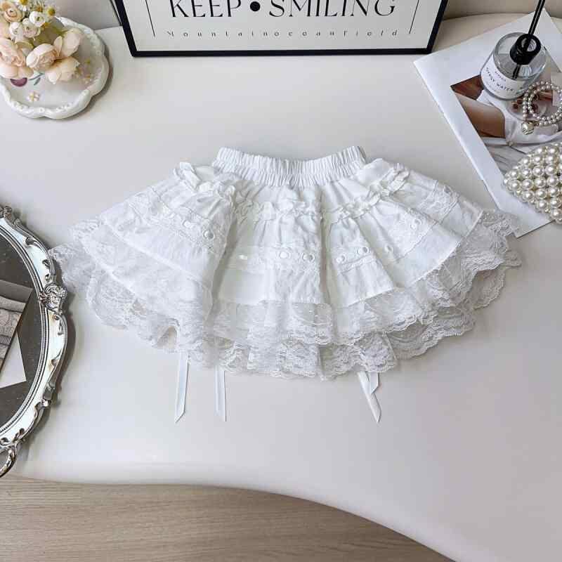 スカート 女の子 キッズ ベビー バレエ レース リボン フリル プリンセス チュール ショートスカート コットン 綿 ふわふわ かわいい お出かけ 発表会 ドレス 夏物