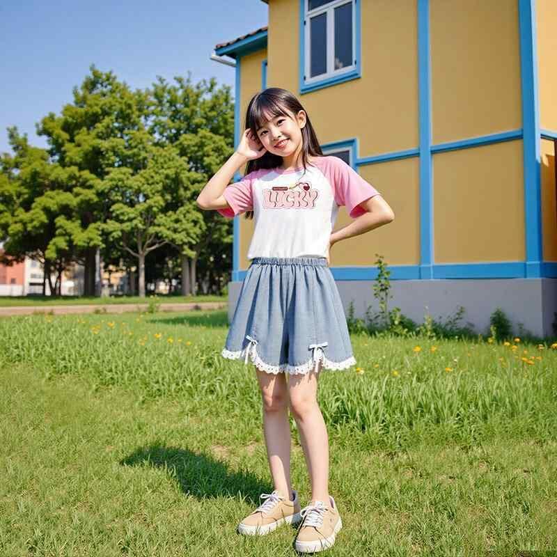 ショートパンツ キッズ 女の子 ジュニア デニム フリル レース 短パン 綿 コットン 夏物 おしゃれ 着回し カジュアル かわいい ホットパンツ ブルー