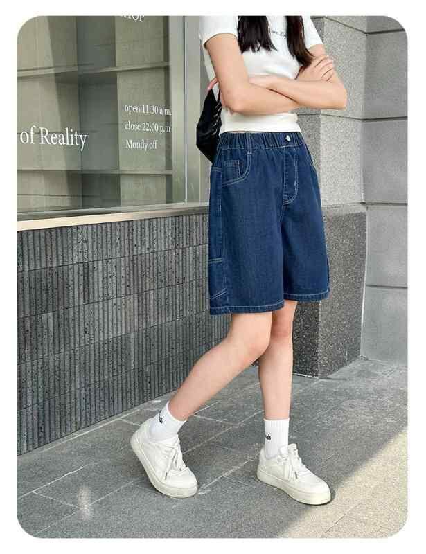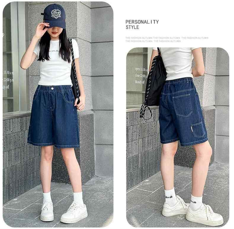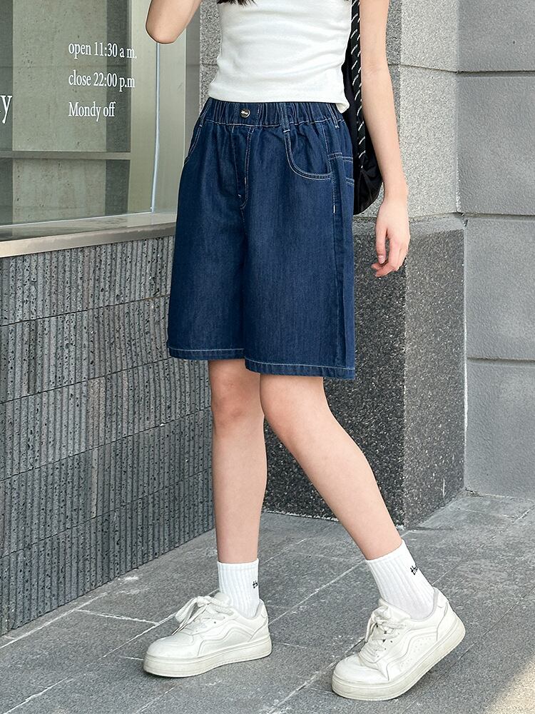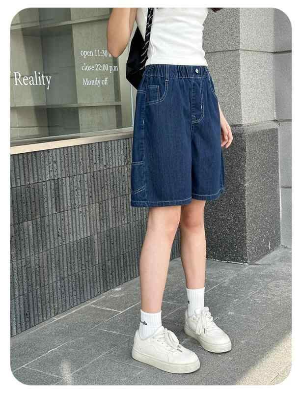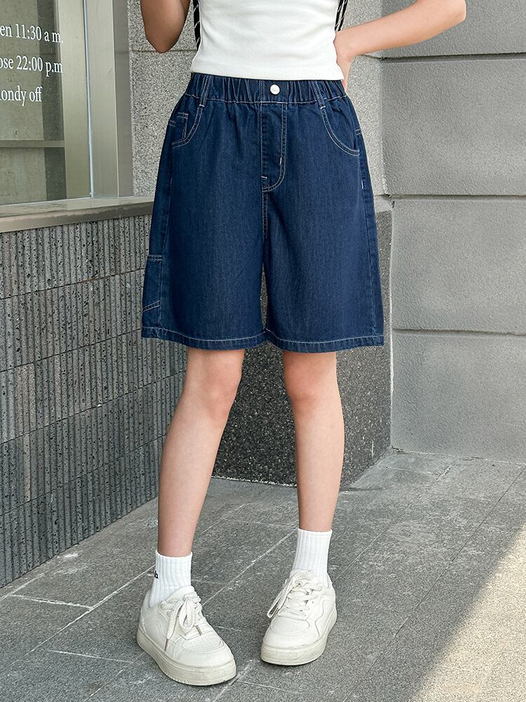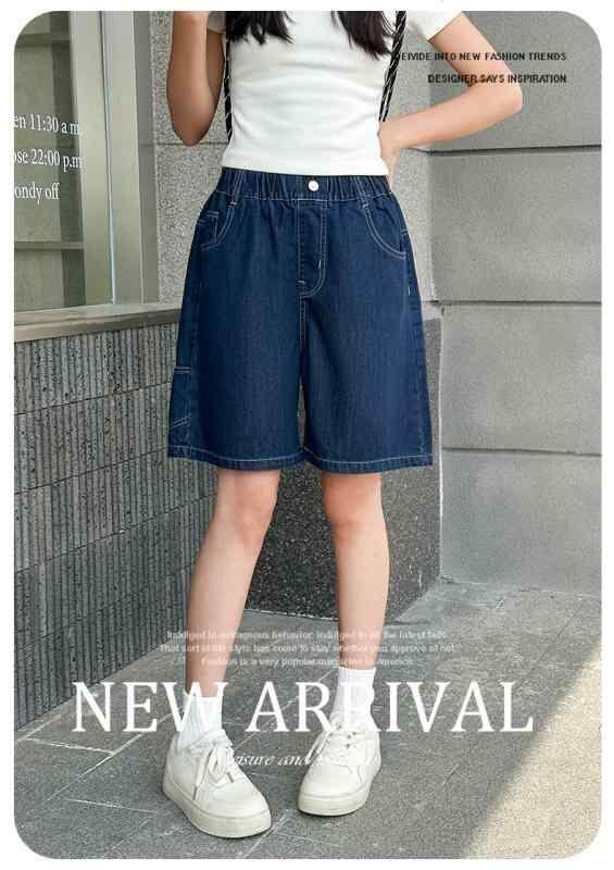 デニム パンツ 女の子 ガールズ ジュニア ハーフパンツ 五分丈パンツ 薄手 夏用 中学生 小学生 夏物 韓国風 ハイウエスト ウエストゴム 柔らかな肌触り 普段使い 通学