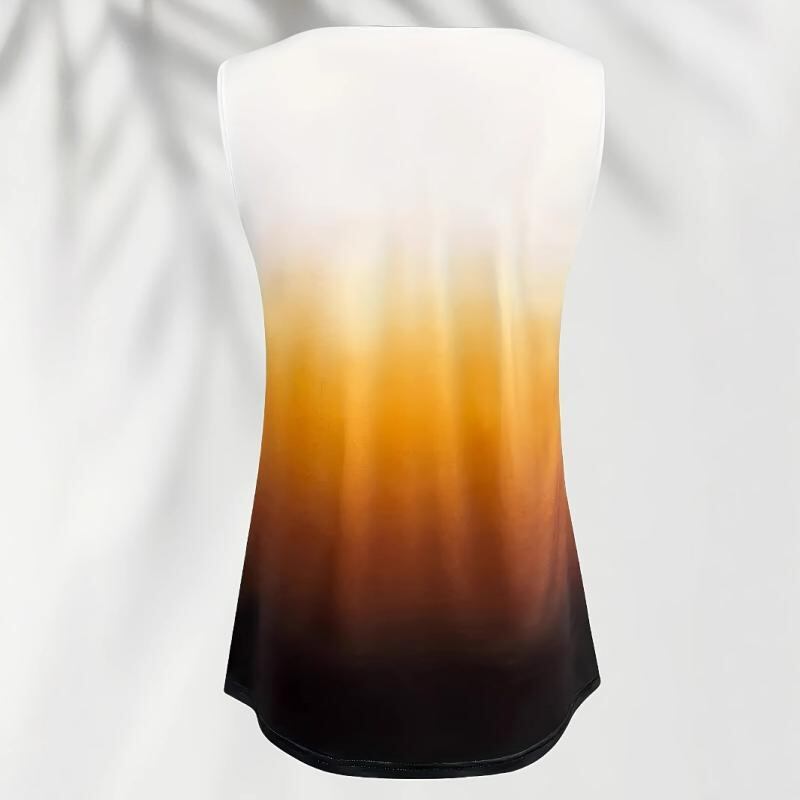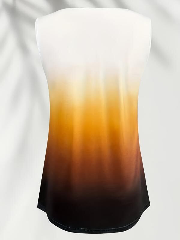 トップス レディース プリント グラデーション ノースリーブ Uネック プルオーバー ポリエステル スパンデックス レギュラー丈 カットソー カジュアル 快適 女性用 グラデーションカラー