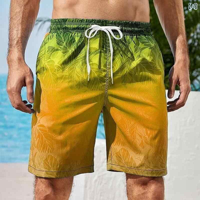 ショートパンツ メンズ 男性用 グラデーション柄 3Dプリント ビーチ 海水パンツ サーフパンツ 水陸両用 夏物 カジュアル リゾート 旅行 ポリエステル メッシュ素材 伸縮性 ルーズフィット
