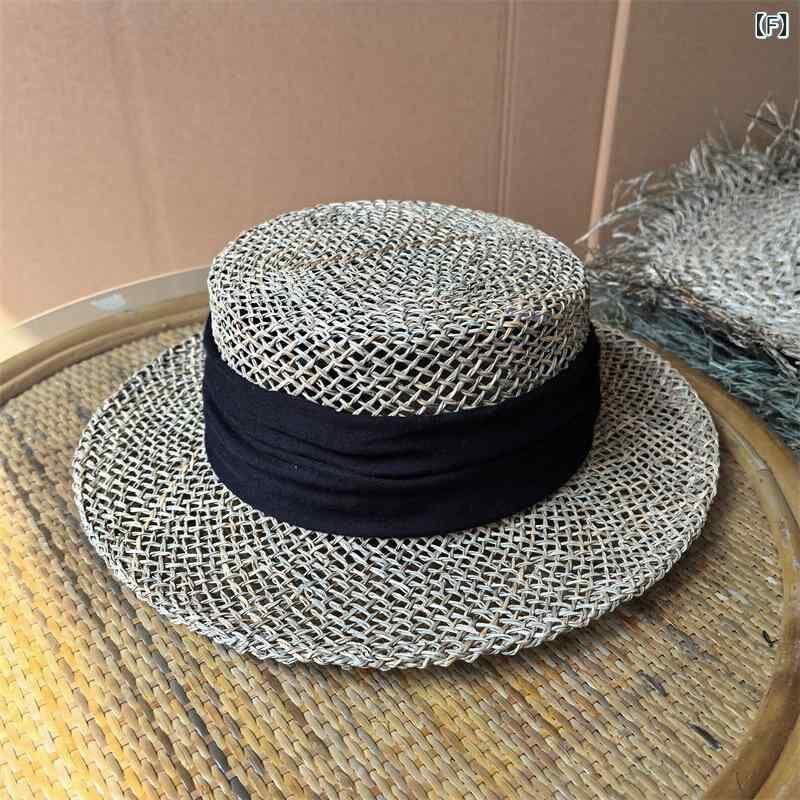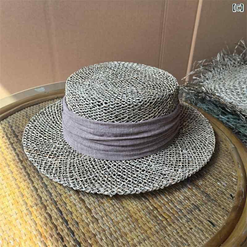 麦わら帽子 レディース 女性用 小つば 平天 ストローハット UVカット 紫外線対策 日焼け防止 手編み プリーツリボン 夏用 ナチュラル 普段使い リゾート 旅行 おでかけ カジュアル 軽量 通気性 天然素材 フラットブリム