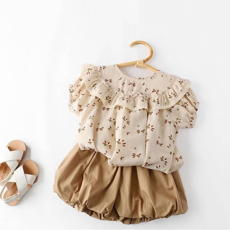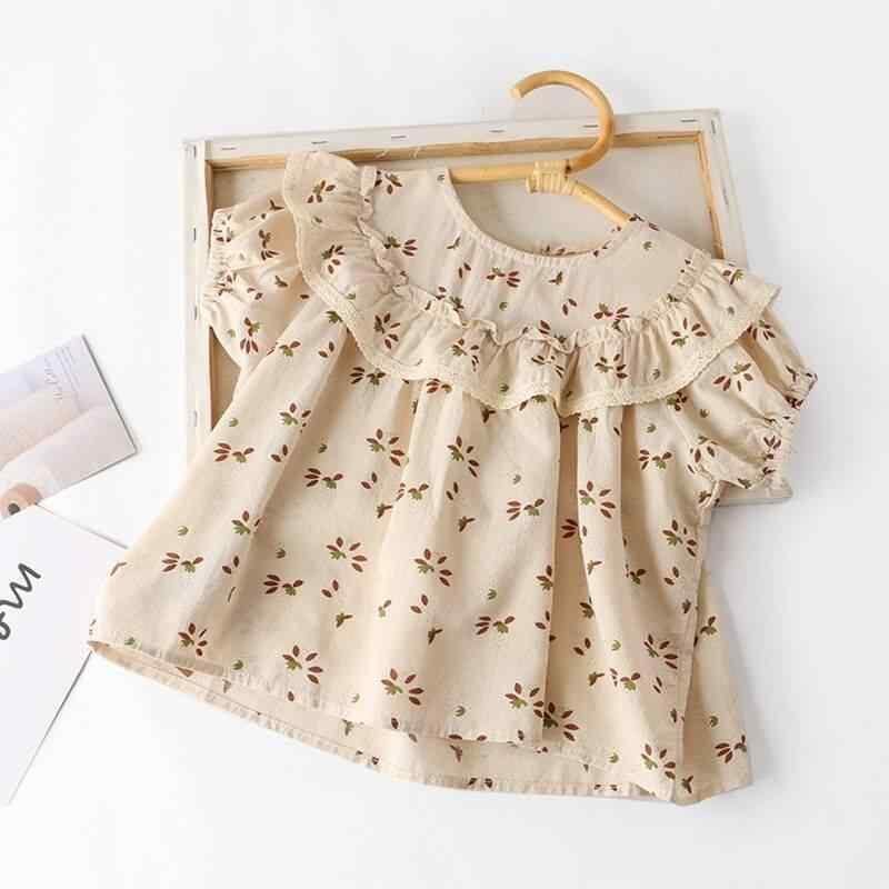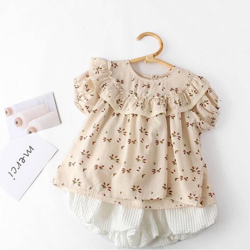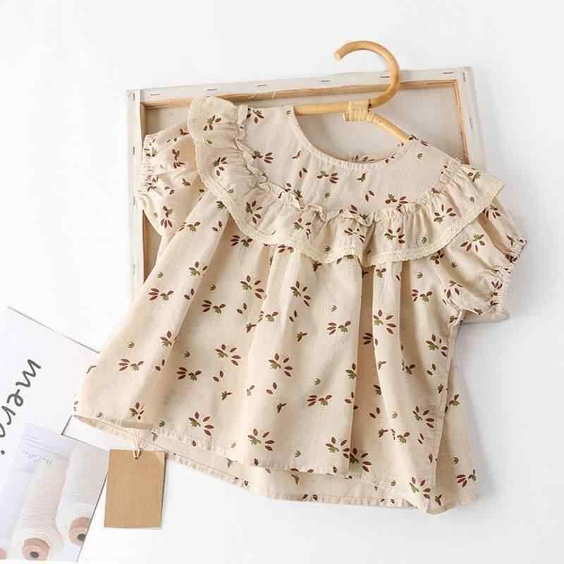 ブラウス 女の子 キッズ 夏 半袖 ドールカラー パフスリーブ 小花柄 総柄 綿 コットン100% 薄手 柔らかい肌触り 普段着 お出かけ カジュアル 子供服