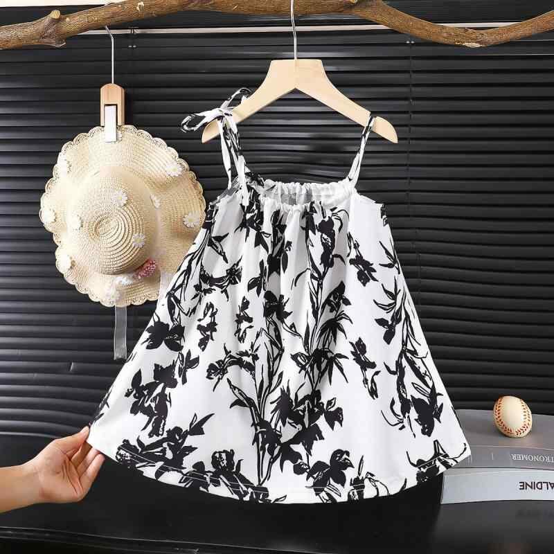 ワンピース 女の子 キッズ ベビー キャミソール プリンセスドレス 花柄 夏 薄手 カジュアル 普段着 ポリエステル 伸縮性 柔らかい肌触り かわいい おしゃれ ホワイト ブラック