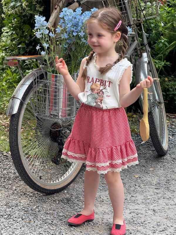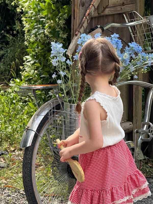 ・カテゴリ: キッズスカート ・スタイル: 韓国風 ・主な素材: 綿 ・素材混率: 綿95% ・性別: 女の子向け ・柄: チェック ・生地加工: 柔軟加工 ・スカート形状: 半身スカート ・裾デザイン: フリル ・デザイン要素: キュート ・カラー展開: レッド ・サイズ展開: 90cm、100cm、110cm、120cm、130cm、140cm