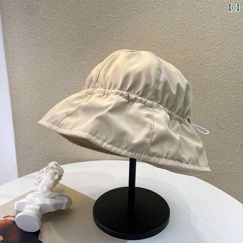 バケットハット レディース 速乾 UVカット 日よけ 通気性 日系 シンプル シワ加工 大つば ポリエステル リゾート 旅行 アウトドア レジャー 普段使い 漁師帽 カーキ ブラック ベージュ