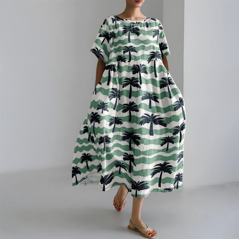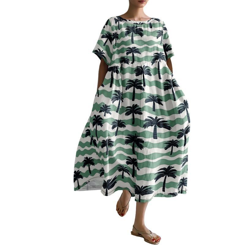 ワンピース レディース 3Dデジタルプリント 立体柄 クルーネック 半袖 ゆったり Aライン ミディ丈 ポリエステル 伸縮性 ベーシック カジュアル プルオーバー