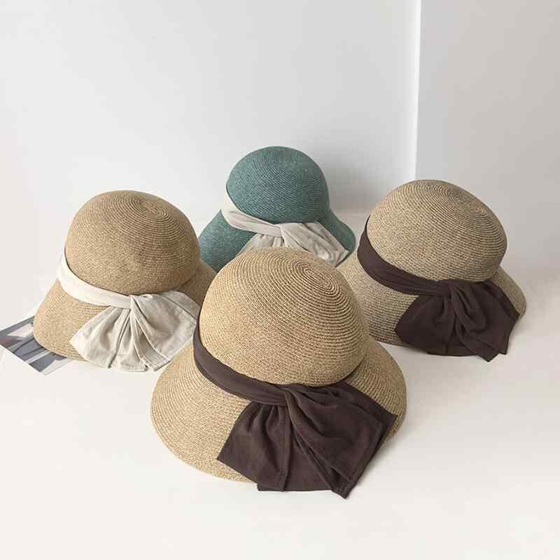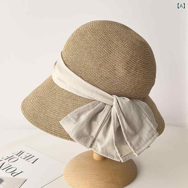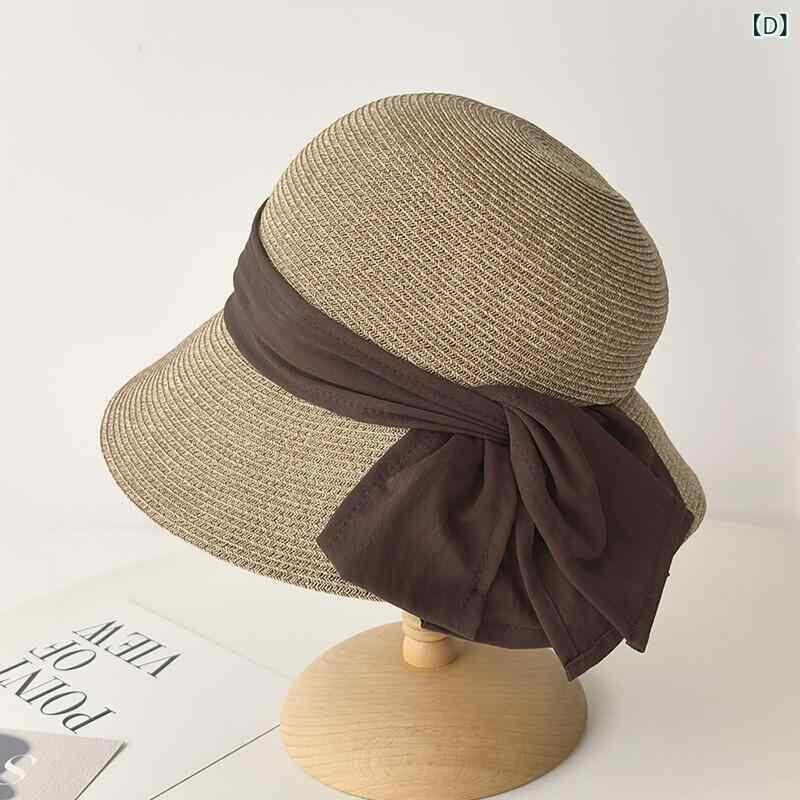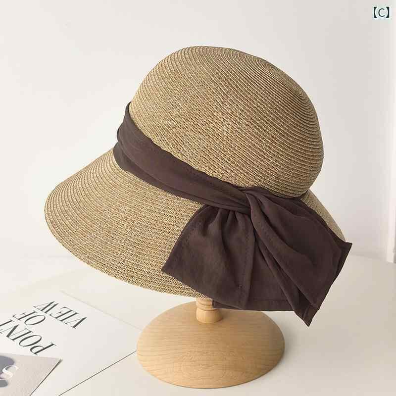 麦わら帽子 レディース 日系 エレガント 上品 プリーツ 大きなダブルリボン 細編み つば広 ハット サマーハット ビーチ 旅行 リゾート お出かけ 紫外線対策 UVカット 小顔効果 ストロー素材