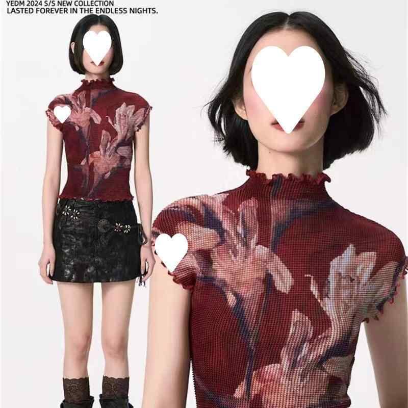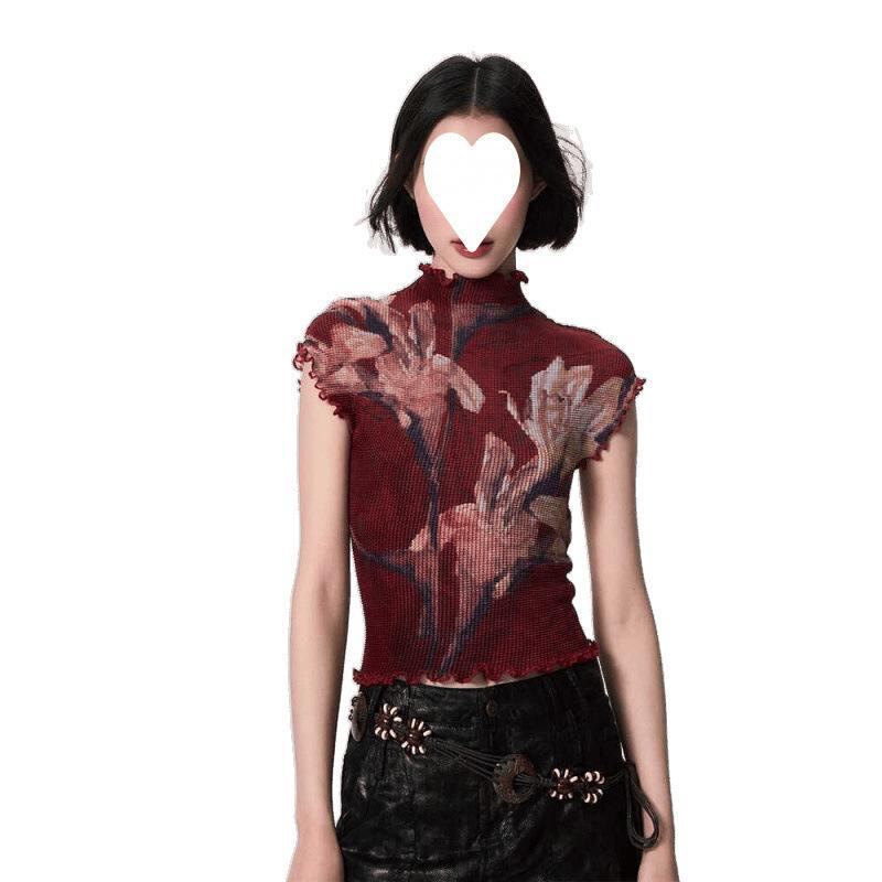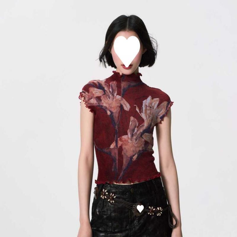 Tシャツ レディース 無地 半袖 フラワープリーツ ポリエステル クルーネック 丸首 着痩せ効果 体型カバー カジュアル トップス