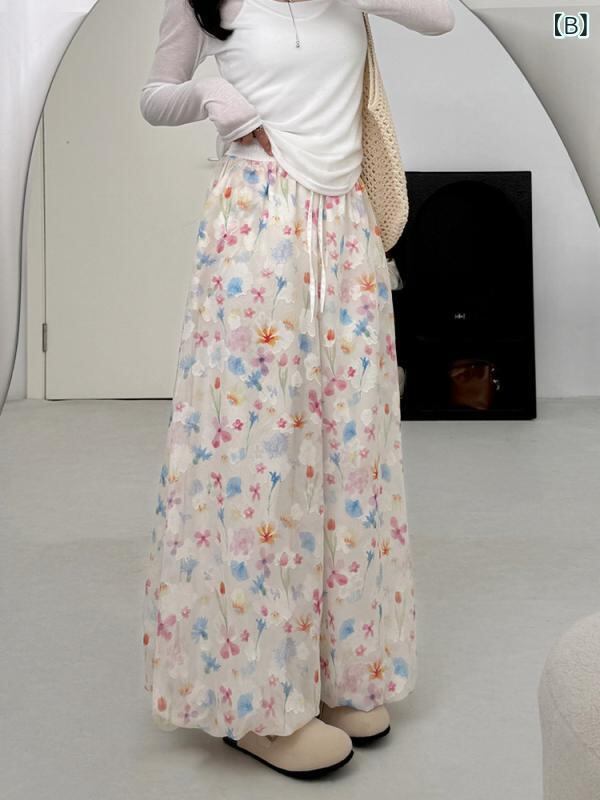 ・カテゴリ: カジュアルパンツ ・種類: キュロットスカート ・スタイル: 日韓カジュアル ・デザイン: シンプル ・テイスト: 甘めカジュアル ・主な素材: ポリエステル80%〜90% ・パンツタイプ: ワイドレッグ ・丈: フルレングス ・ウエスト: ハイウエスト ・厚さ: 薄手 ・柄: 小花柄 ・伸縮性: 中程度 ・加工: ノーアイロン ・対象: 女性 ・カラー展開: マルチカラー ・サイズ展開: S、M、L