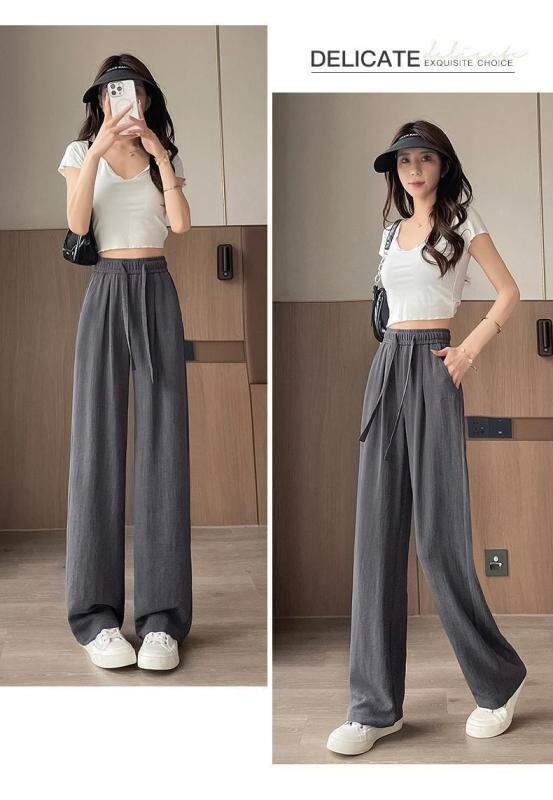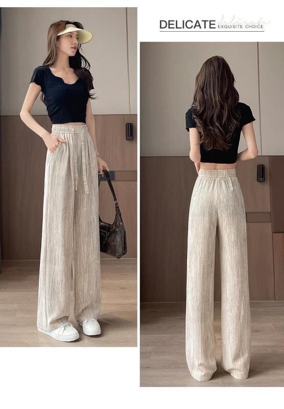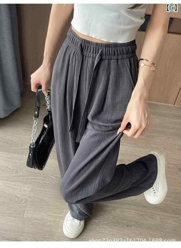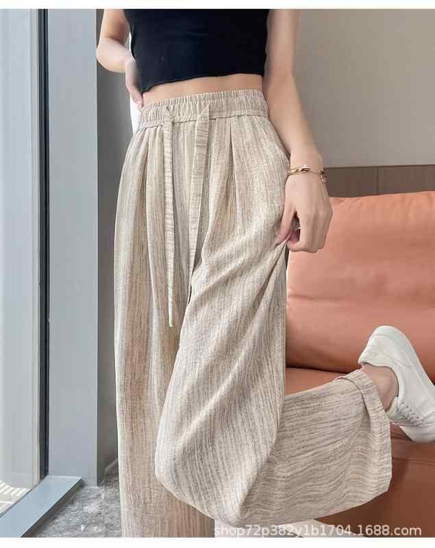 カジュアルパンツ レディース タイダイ染め 接触冷感 ストレッチ ハイウエスト ドローストリング ゆったり ストレートパンツ ドレープ感 ロング丈 綿麻混
