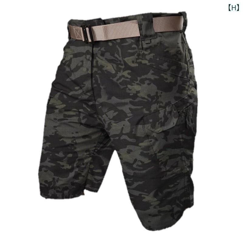 ショートパンツ メンズ ハーフパンツ タクティカル 迷彩 カモフラージュ 高品質 防水 撥水 吸湿速乾 通気性 耐久性 ストレート ポリエステル ストレッチ 夏 サマー アウトドア スポーツ カジュアル ベルト付き