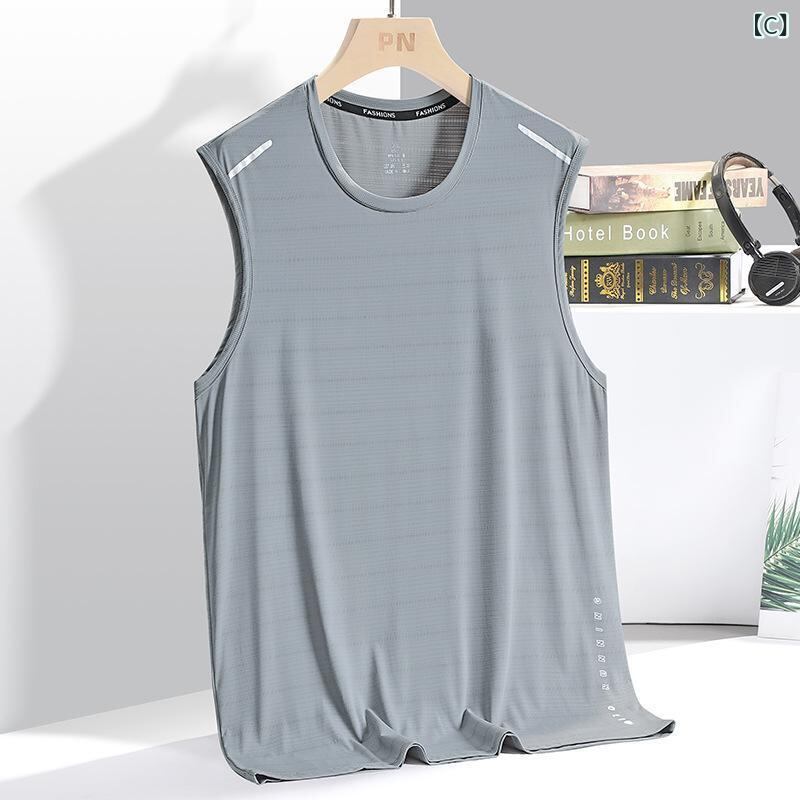 タンクトップ メンズ 接触冷感 吸汗速乾 ビッグシルエット スポーツウェア バスケットボール フィットネス トレーニング 夏用 大きいサイズ ゆったり 薄手 ポリエステル 無地 トップス カジュアル 運動用 リラックスウェア