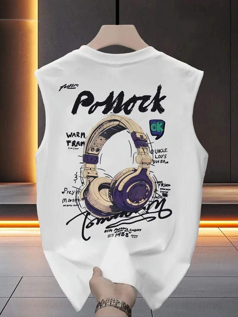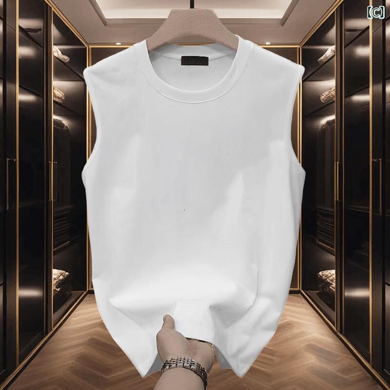 タンクトップ メンズ スポーツ ノースリーブ Tシャツ 綿100% コットン 丸首 接触冷感 ルーズ ビッグシルエット アメカジ カジュアル ストリート 普段使い 着回し 夏用 ホワイト ブラック