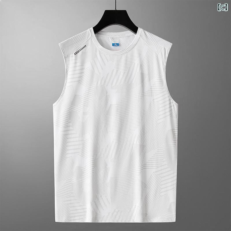 タンクトップ メンズ 男性 夏用 接触冷感 速乾 吸湿速乾 クルーネック 丸首 スポーツ カジュアル 普段使い 通気性 ゆったり ルーズフィット 大きいサイズ ビッグサイズ 薄手 ポリエステル素材 ノースリーブ