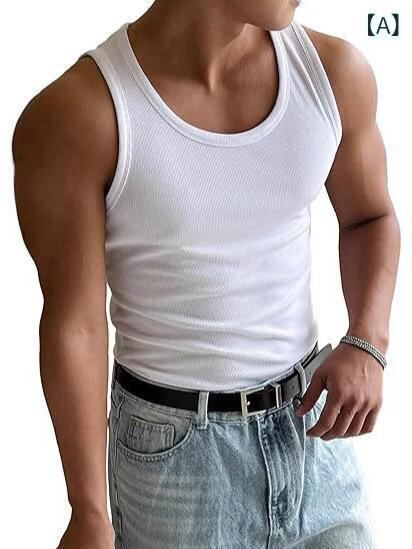 タンクトップ メンズ クルーネック トレーニング ワークアウト スポーツ ジム フィットネス ポリエステル 吸湿速乾 軽量 伸縮性 スリムフィット 無地 夏用