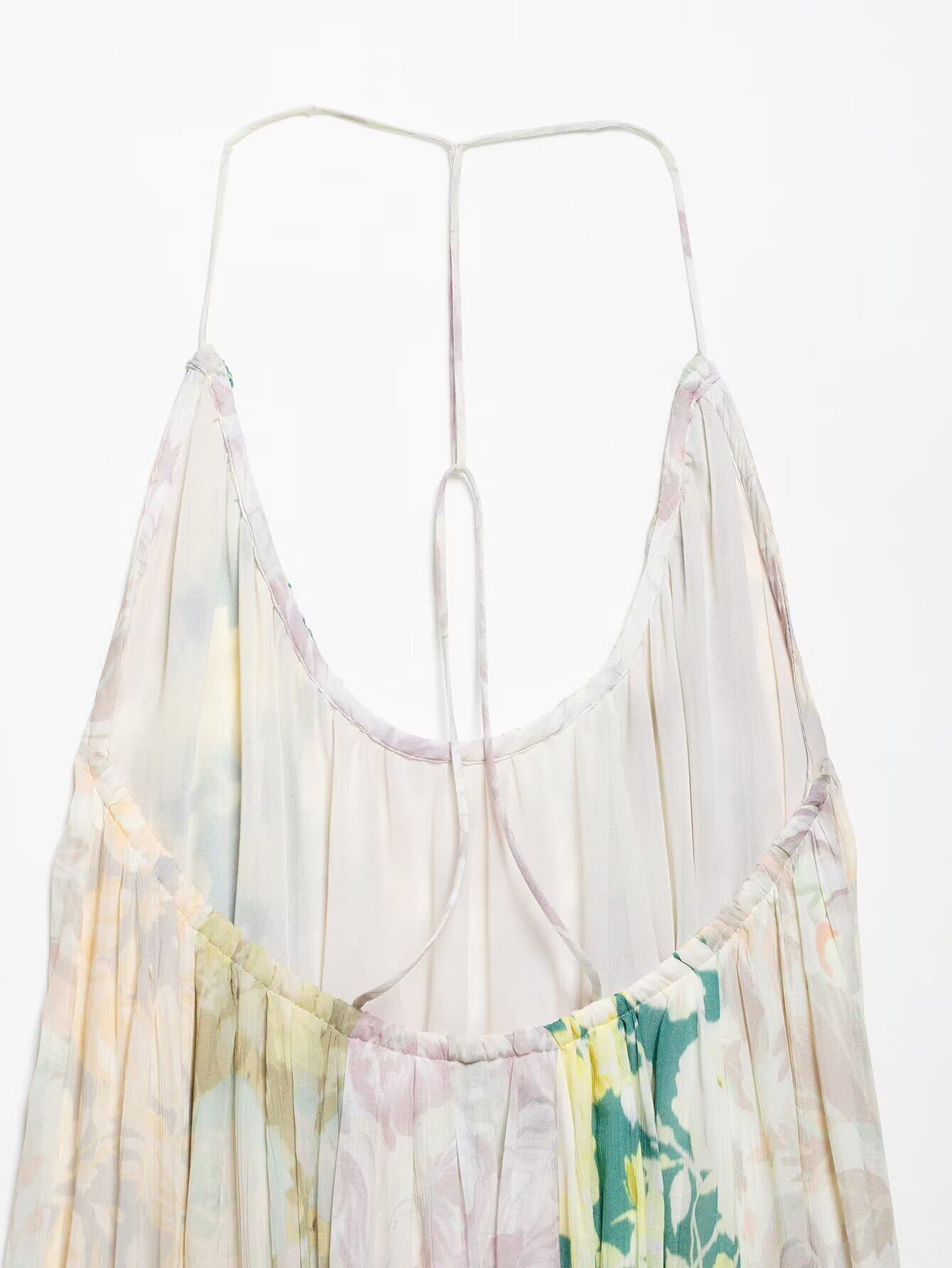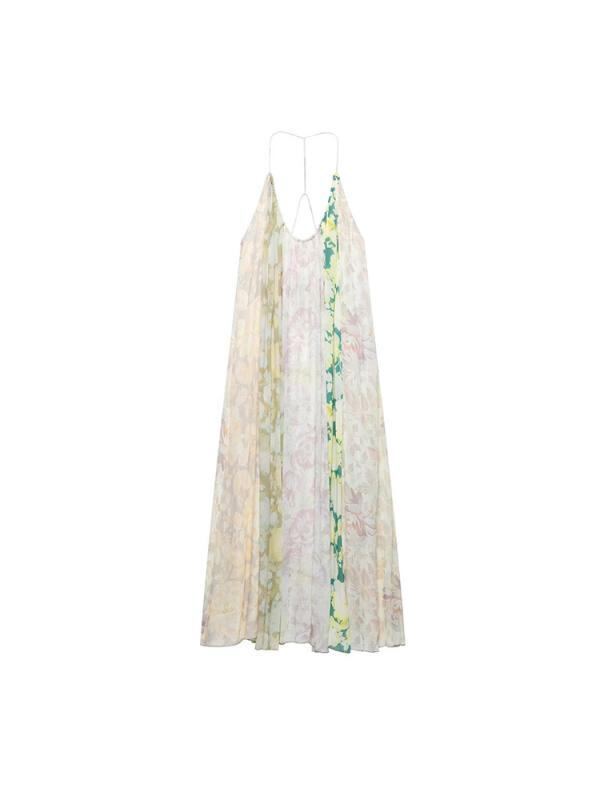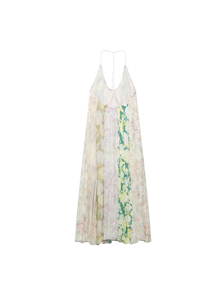 ワンピース レディース エレガント ゆったり バックシャン キャミソール ロング丈 プリント パッチワーク Aライン Uネック ノースリーブ 綿 ポリエステル 総柄 通勤 オフィス カジュアル リゾート