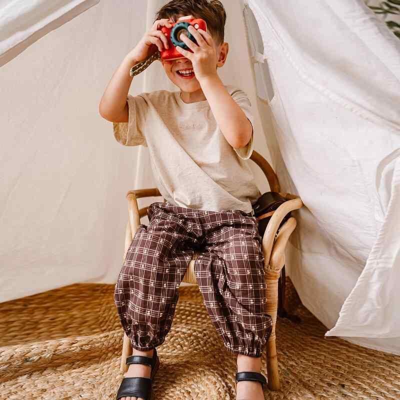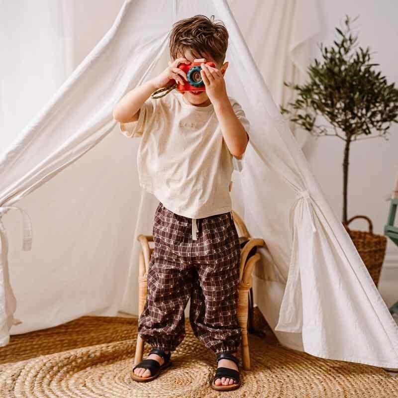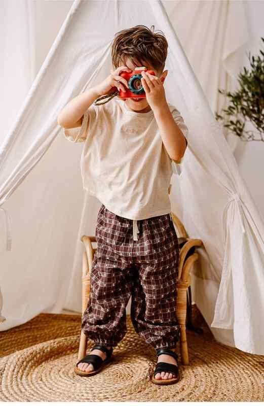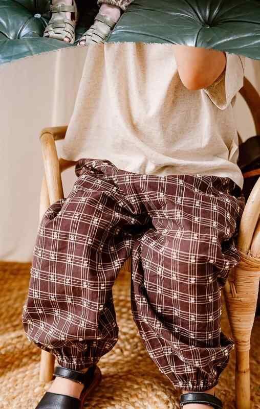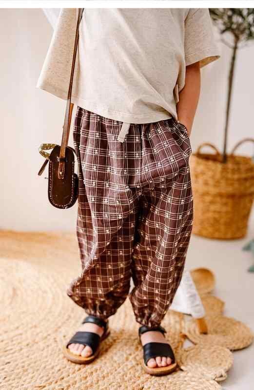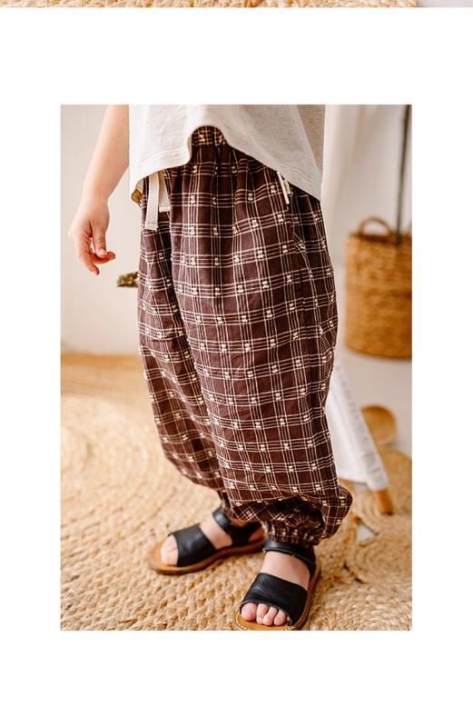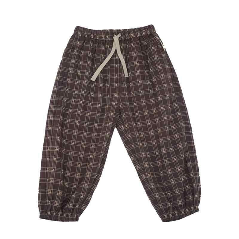 キッズパンツ ベビー 男女兼用 夏 軽量 薄手 接触冷感 ジョガーパンツ 裾ゴム ロングパンツ 虫よけ 通気性 吸湿速乾 綿100% レトロチェック柄 凹凸感 普段使い おうち時間 アウトドア