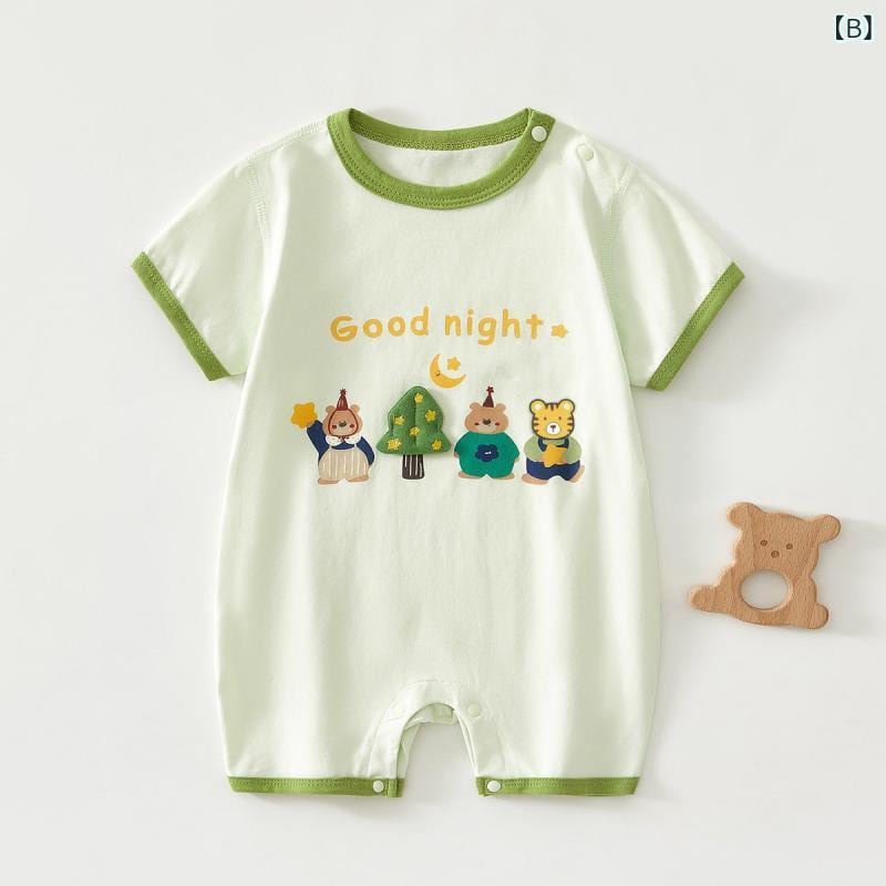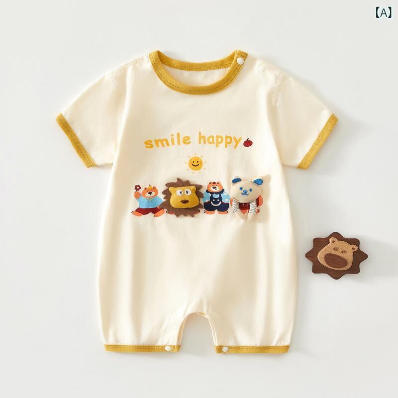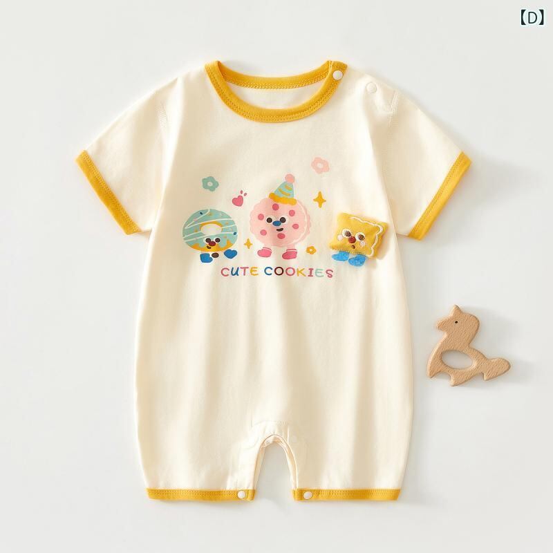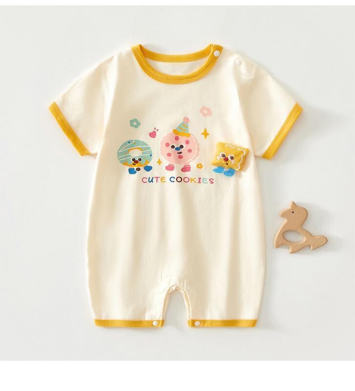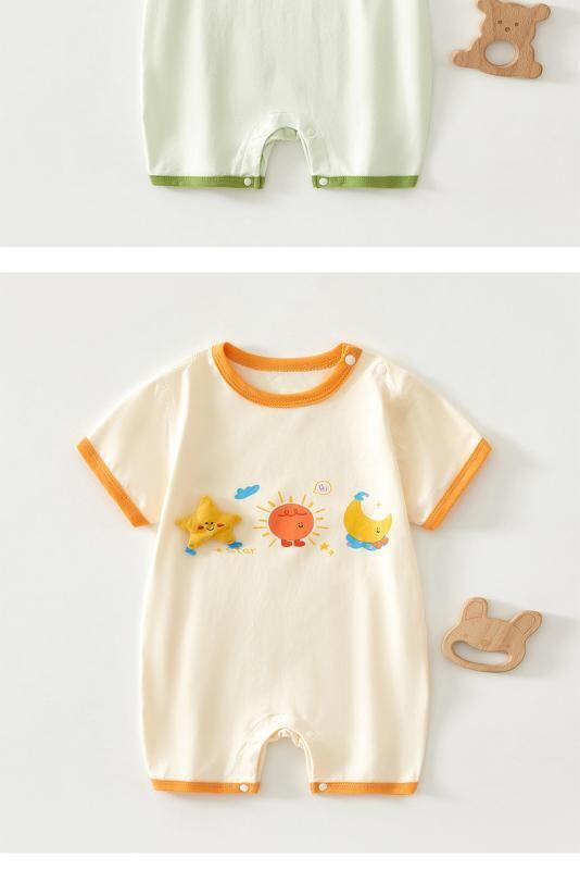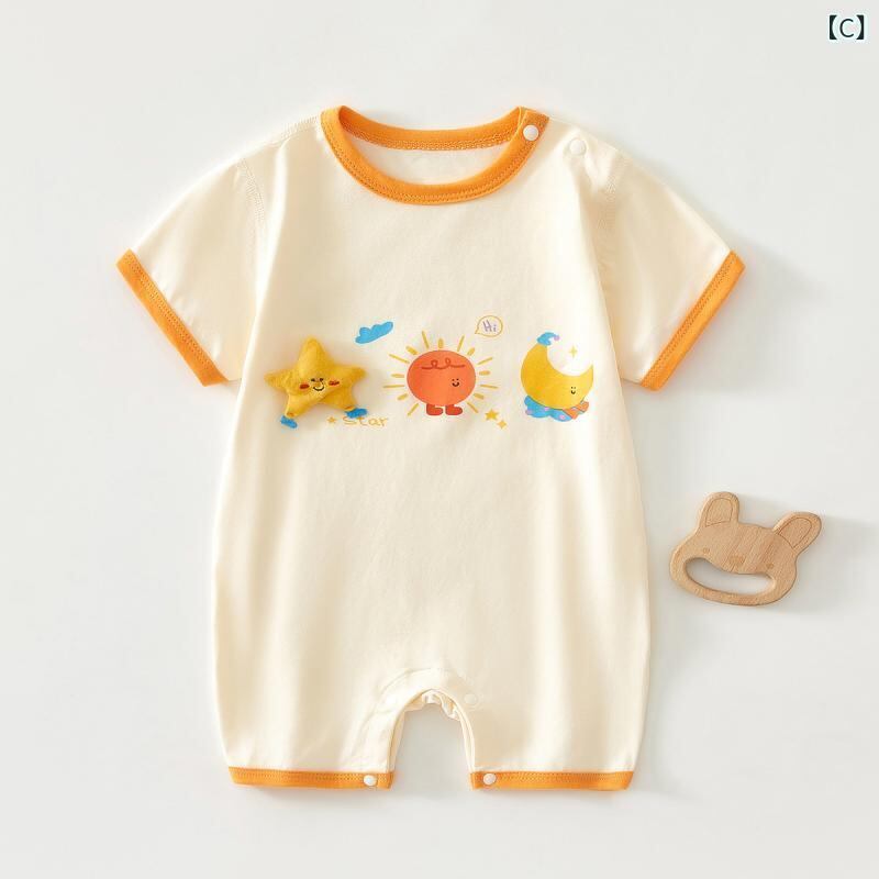 ロンパース ベビー 男女兼用 新生児 乳幼児 夏 薄手 半袖 プルオーバー 無縫製 綿 ストレッチ 快適 通気性 吸湿速乾 肌着 部屋着 ルームウェア カバーオール つなぎ