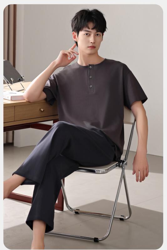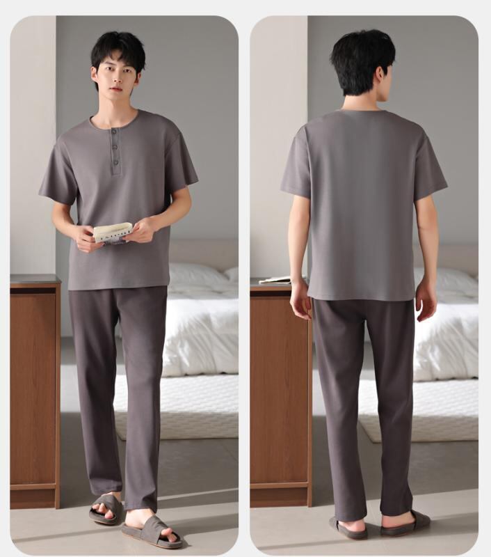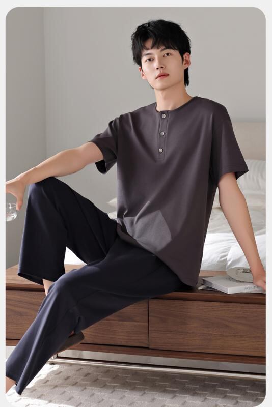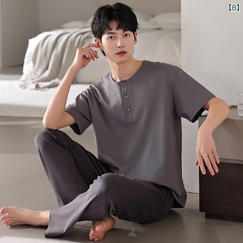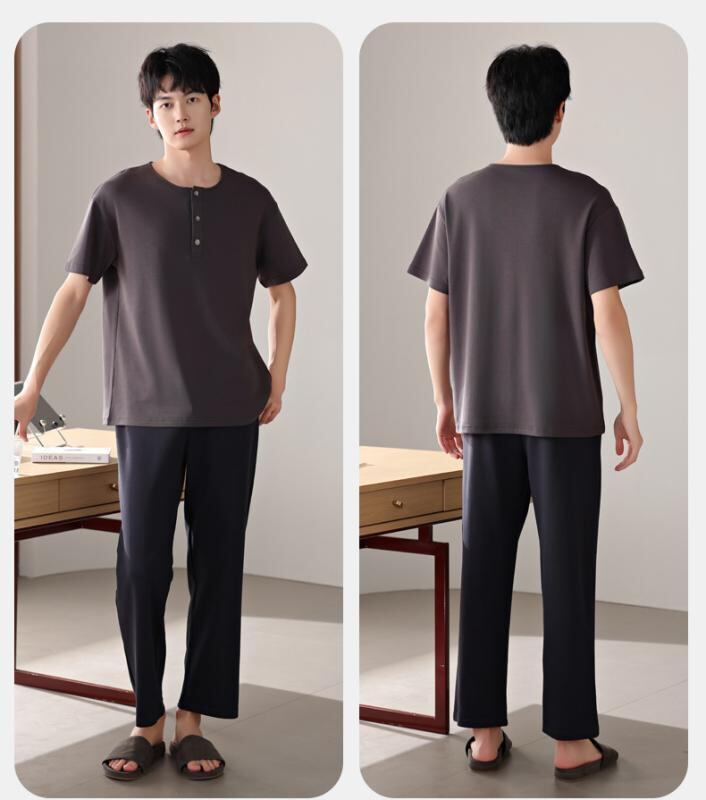 パジャマ メンズ モダール 薄手 接触冷感 プルオーバー クルーネック 半袖 長ズボン ルームウェア 部屋着 ワンマイルウェア カジュアル 快適 リラックス