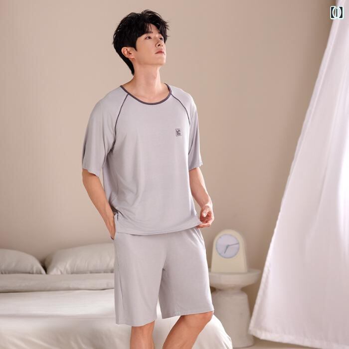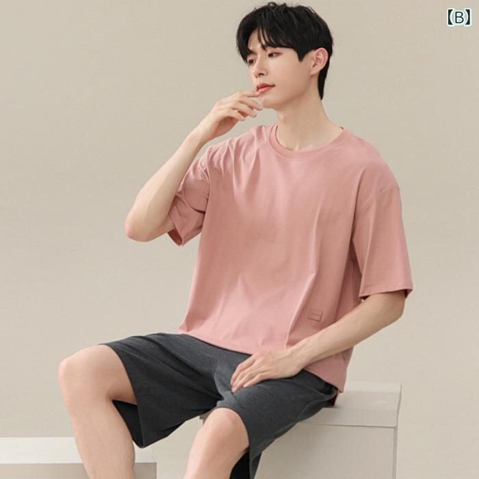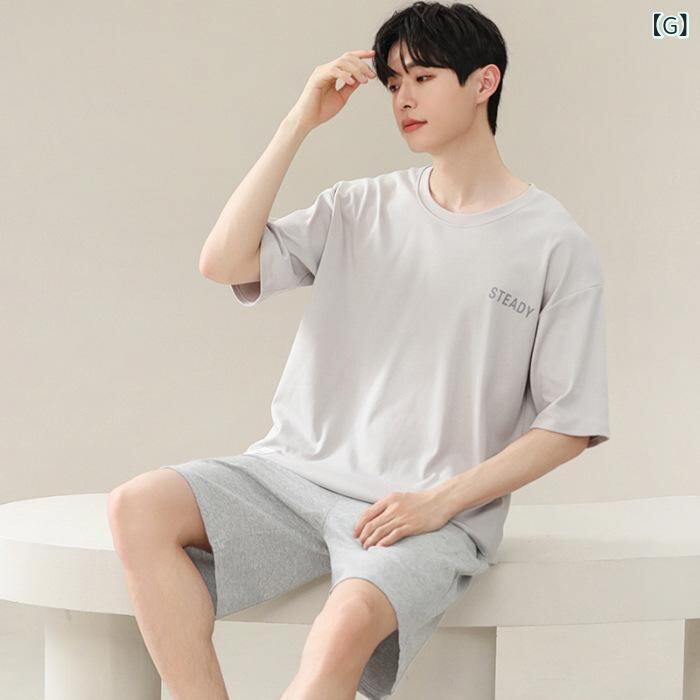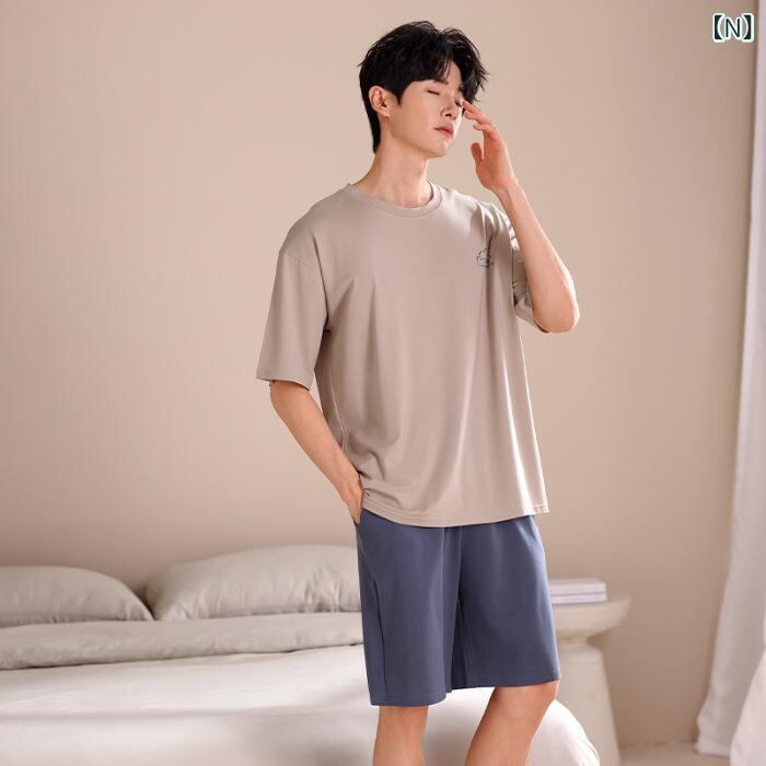 パジャマ メンズ 男性 モダール 無地 半袖 ショートパンツ ハーフパンツ セットアップ ルームウェア 部屋着 ホームウェア 大きいサイズ ゆったり 薄手 軽量 クルーネック 丸首 快適 夏用 ワンマイルウェア カジュアル リラックス