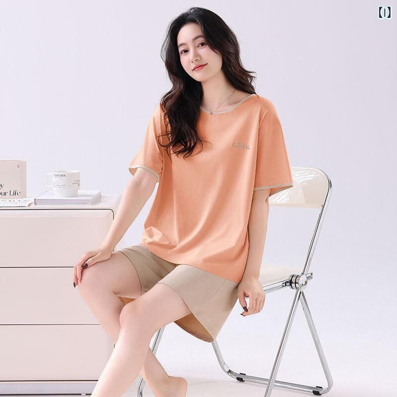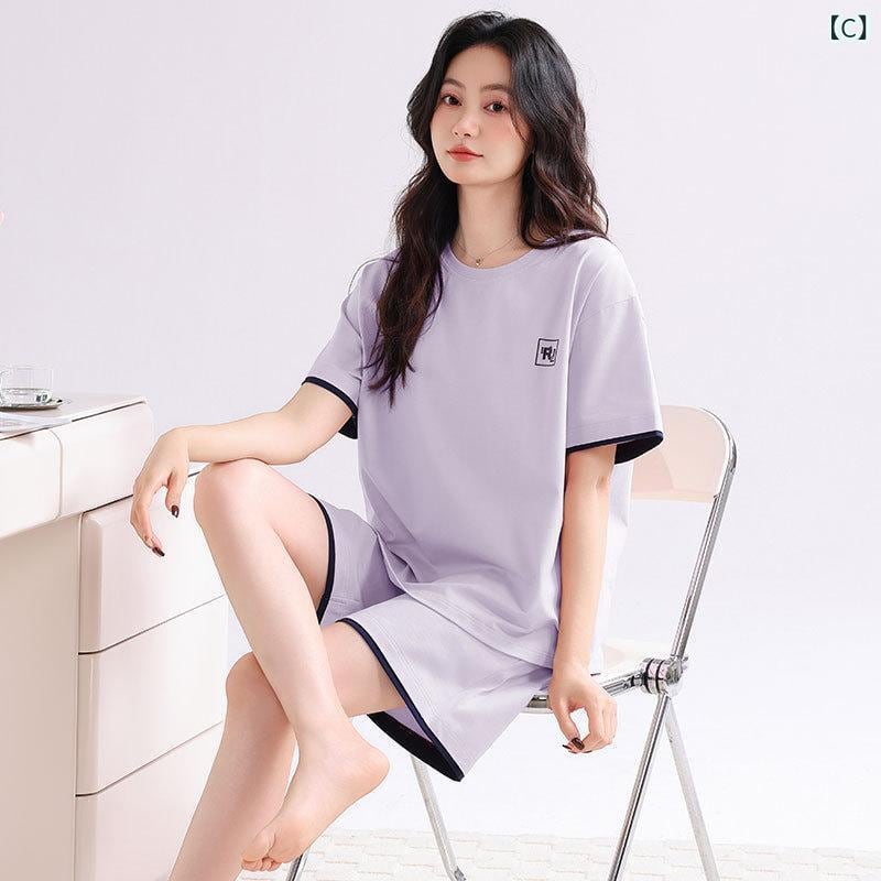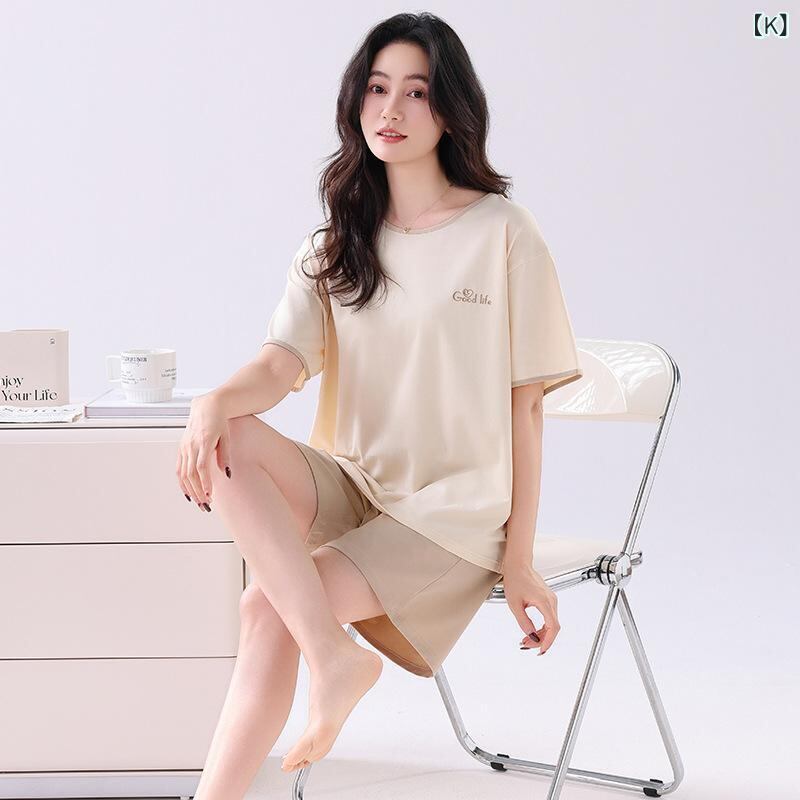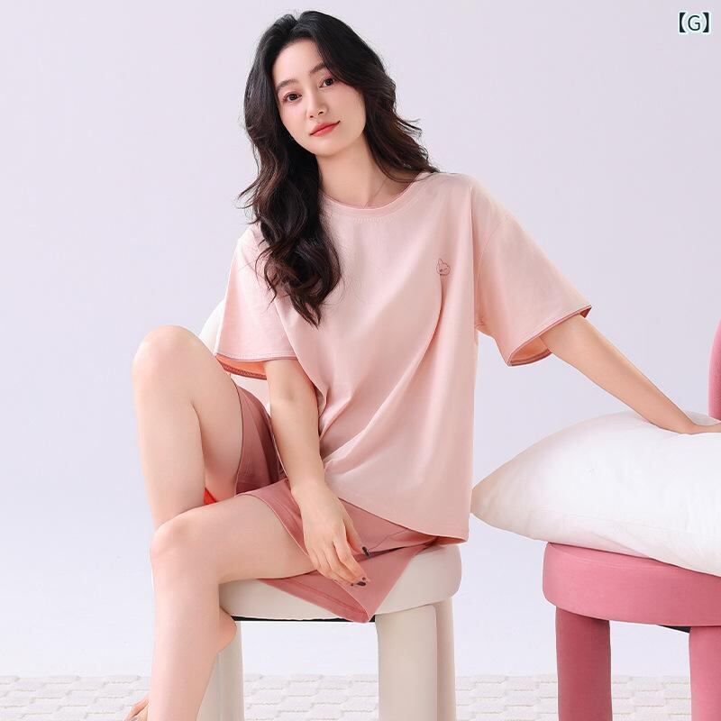 ・カテゴリ: ルームウェアセット・スタイル: プルオーバー・主な素材: 綿30~50%未満、モダール・生地の厚さ: 薄手 (121-140g/m²程度)・ネックライン: クルーネック・袖丈: 半袖・パンツ丈: ショートパンツ・特徴: リラックス、通気性、伸縮性、快適な着心地、部屋着、外出着・対象: 女性・用途: ルームウェア、アウトドア・サイズ展開: M、L、XL、XXL、XXXL・推奨体重: M (40-50kg)、L (50-60kg)、XL (60-70kg)、XXL (70-80kg)、XXXL (80-90kg)・テイスト: シンプルカジュアル