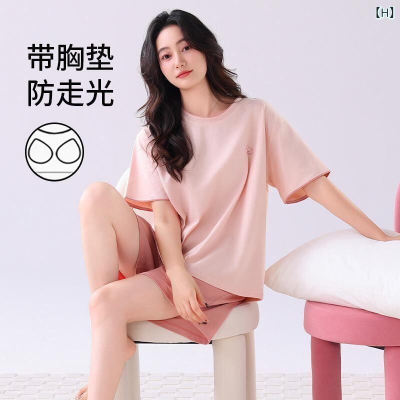 ルームウェア レディース カップ付き 夏 接触冷感 モダール 半袖 ショートパンツ 薄手 クルーネック 部屋着 リラックス カジュアル ワンマイルウェア 上下セット 快適 通気性