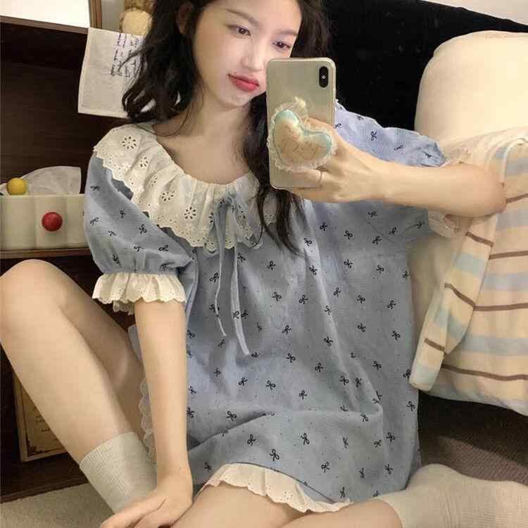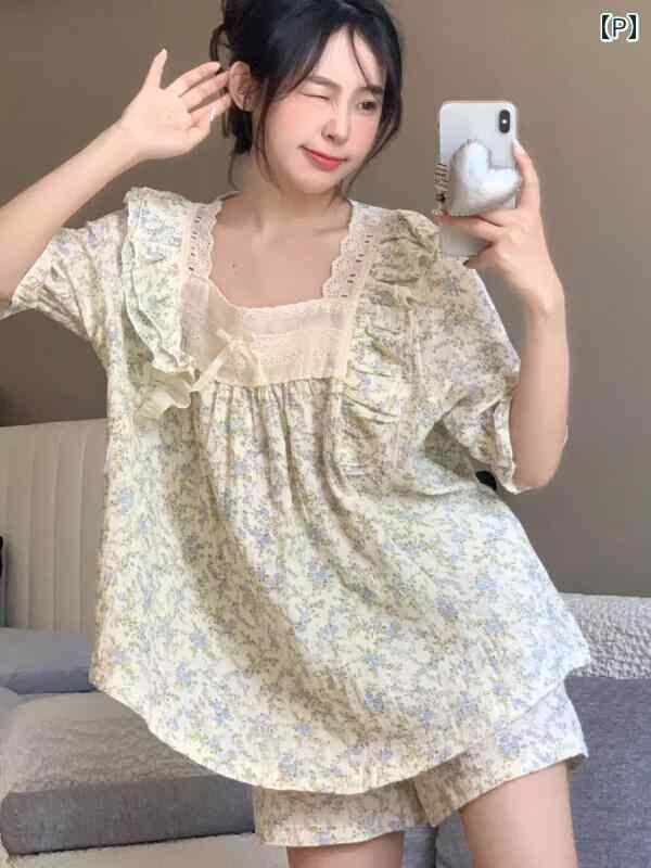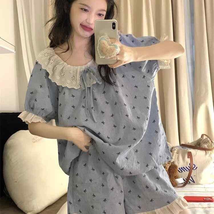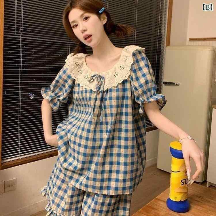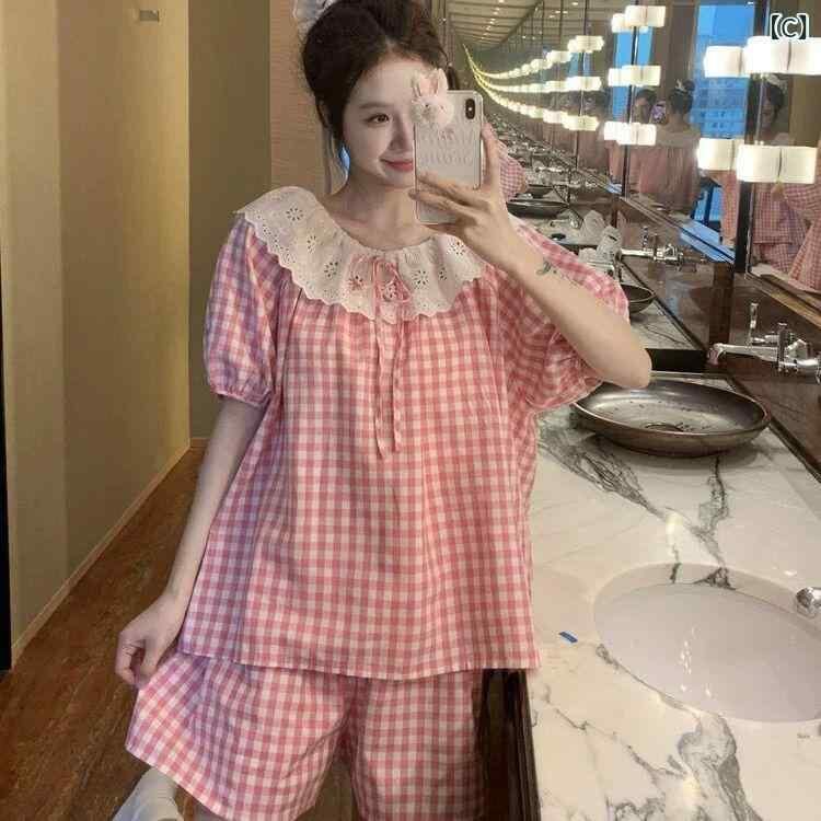 パジャマ レディース ルームウェア 部屋着 寝間着 半袖 ショートパンツ セットアップ かわいい レース フリル ふわふわ 再生繊維 ポリエステル綿 薄手 軽量 ゆったり リラックス 高級感 夏用 涼しい着心地 ワンマイルウェア