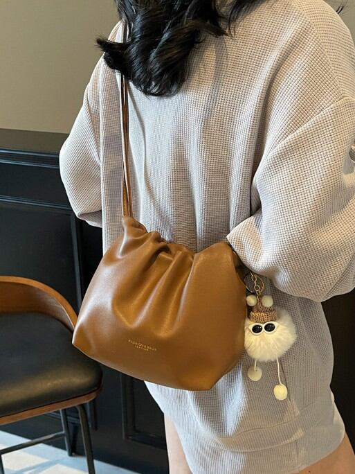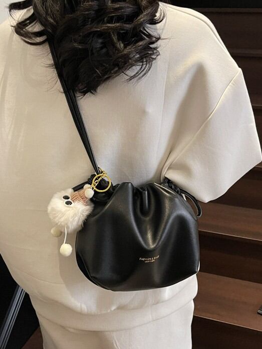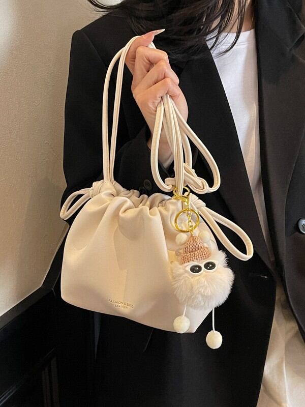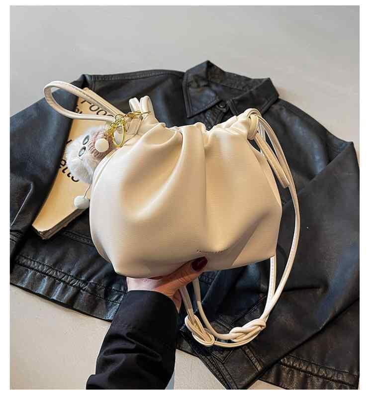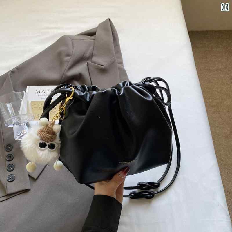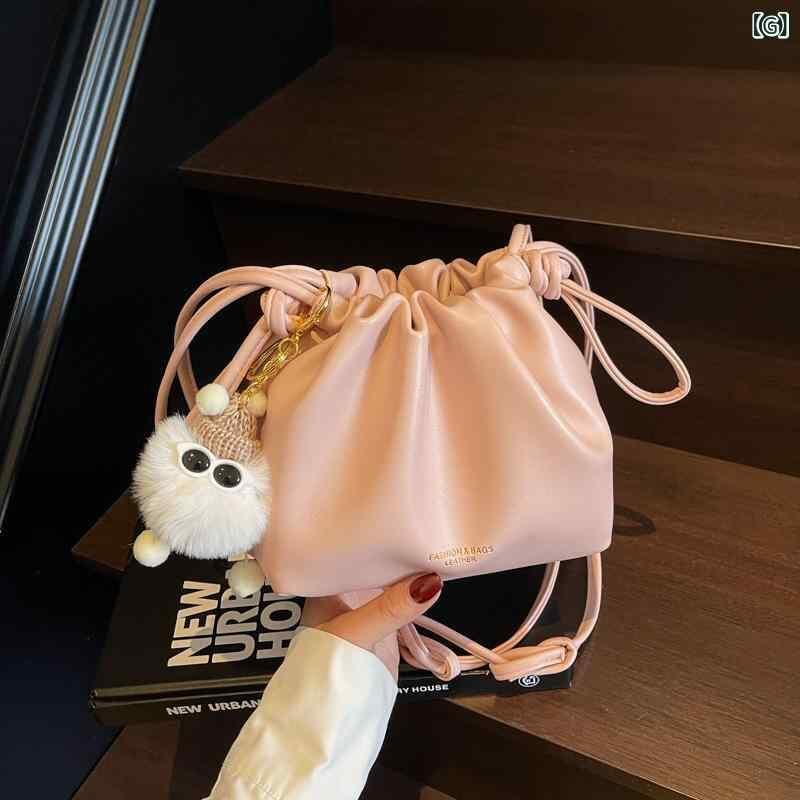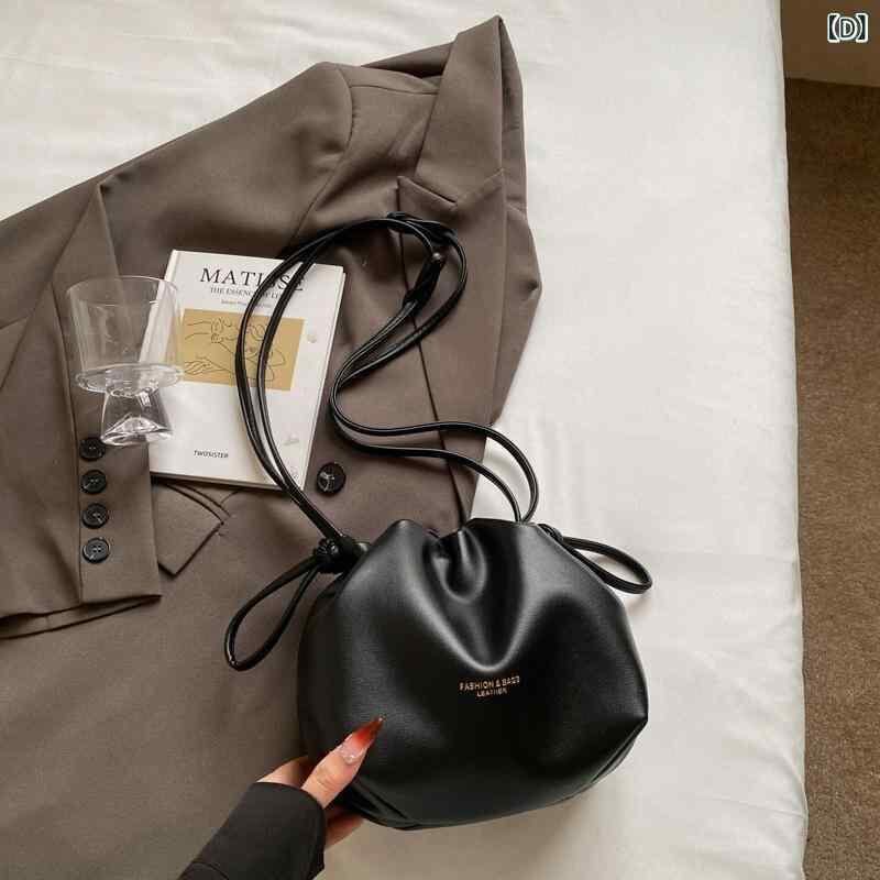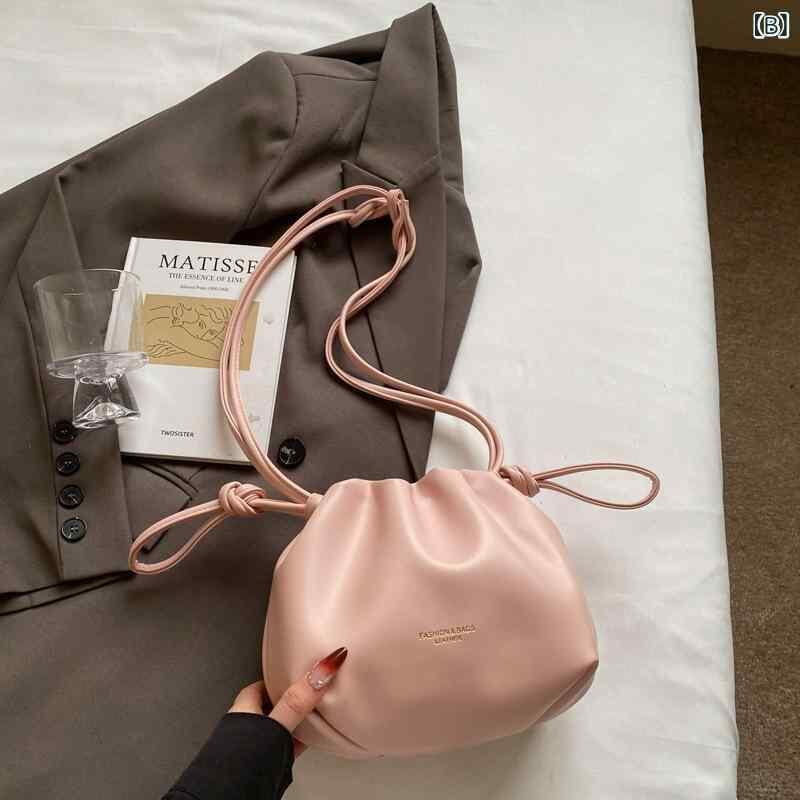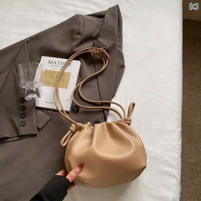 バッグ レディース 個性的デザイン PUレザー 夏 普段使い 万能 韓国風 ワンショルダー 肩掛け 斜め掛け ギャザー シワ加工 バケット型 巾着型 ミドルサイズ ファスナーポケット スマホポケット ソフトタイプ チェーンストラップ