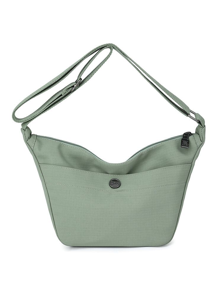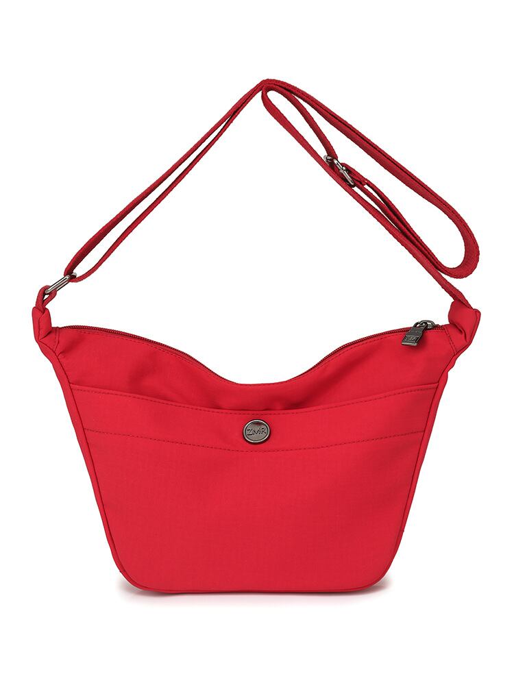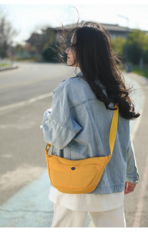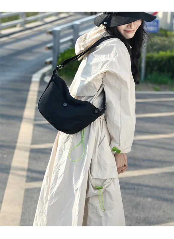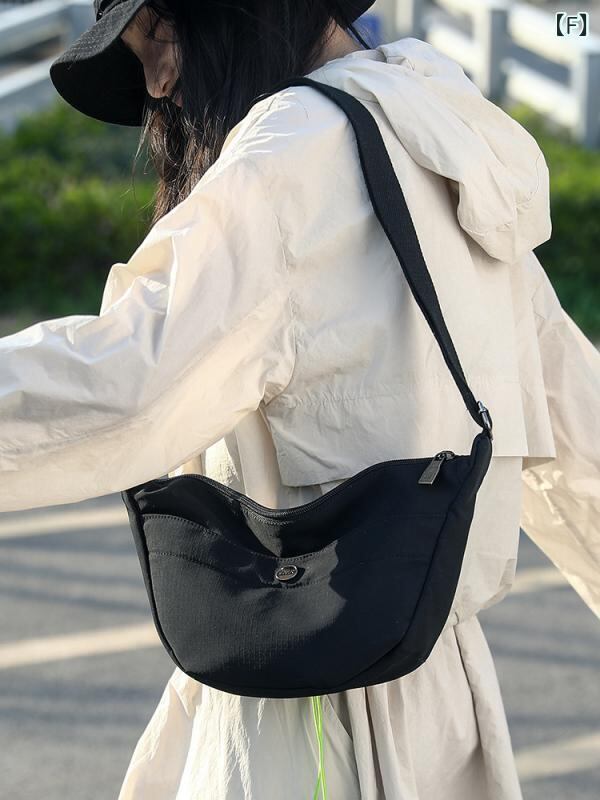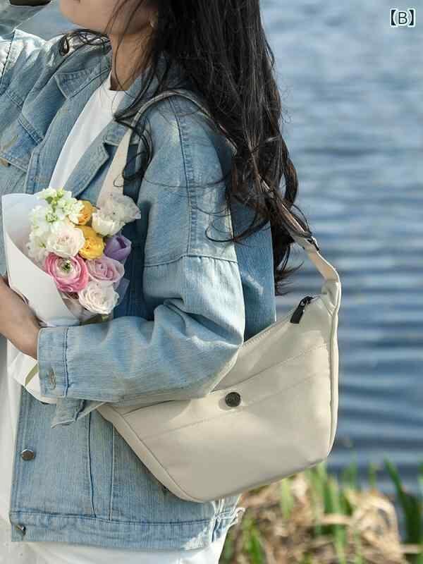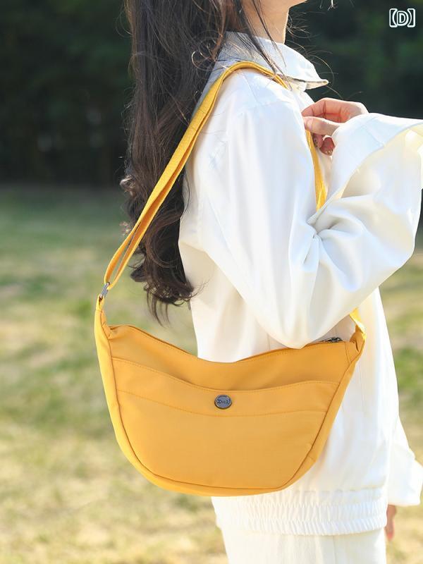 バッグ レディース 餃子型 オックスフォード生地 高級感 シンプル ショルダー 斜め掛け 鞄 ミディアムサイズ 横型 スクエア ファスナー開閉 ファスナー付き仕切りポケット 内側ポケット ステッチ デイリーユース 普段使い 多色展開