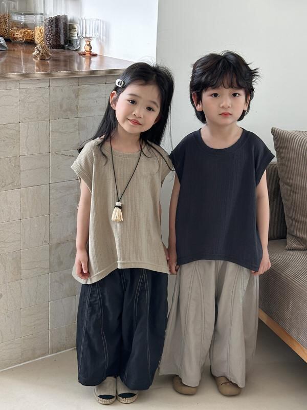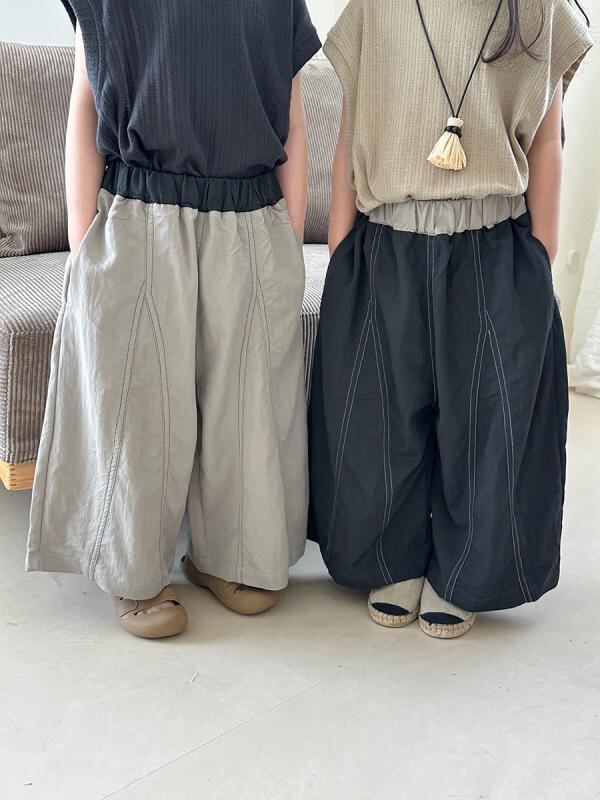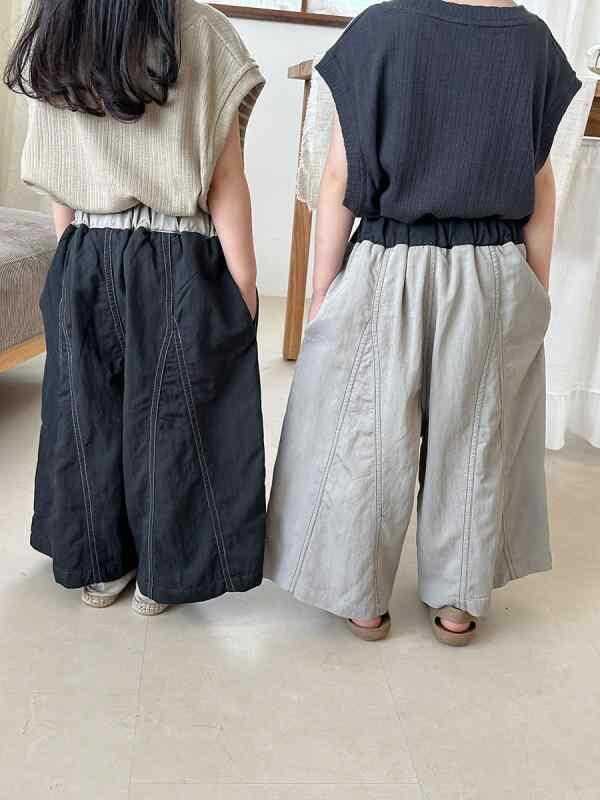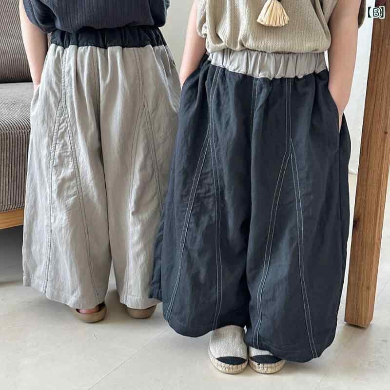パンツ キッズ 男女兼用 ベビー 夏 デニム 再生繊維 ビスコース 九分丈 クロップドパンツ ワイドパンツ シンプル 防蚊 虫よけ カジュアル 柔らか加工 ハイウエスト ゴムウエスト 無地
